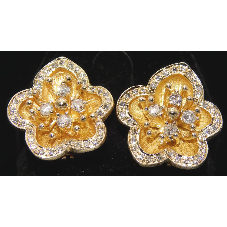 Stupendo e pesante! Orecchini fiori 14k oro e diamanti