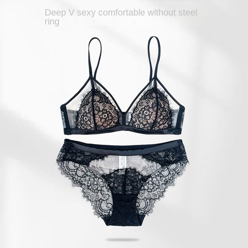 Completo Intimo Gotico in Pizzo Francese, Reggiseno Sexy e Puro Desiderio per Seni Piccoli da Donna, Senza Ferretti, con Effetto Push-Up
