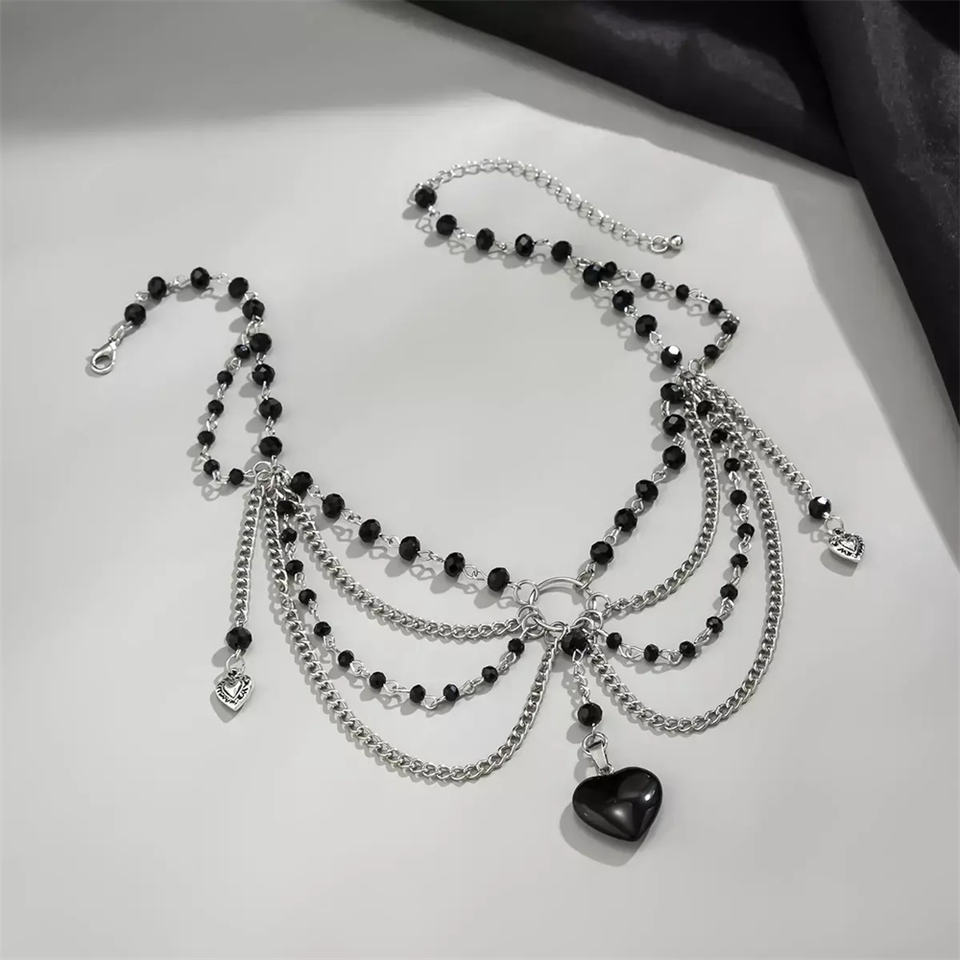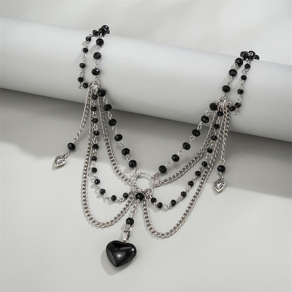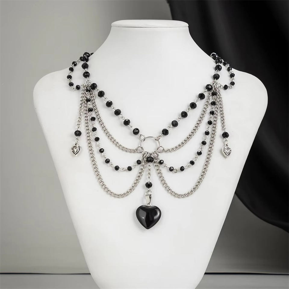 Gotico a strati di perle di cristallo con nappe catene con cuore d'amore ciondolo collana per donne signore girocollo collo di moda gioielli