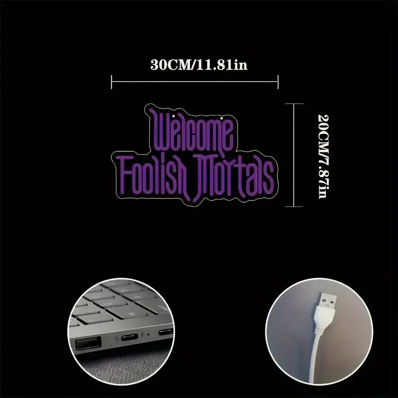 Fascino spettrale di controllo del pulsante di decorazione per la casa di Halloween con indegno al Neon LED alimentato da USB gotico