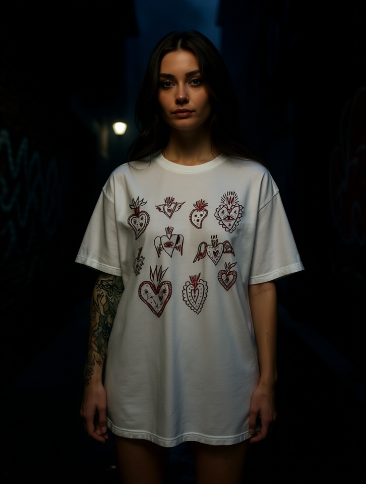Gothic Vaine Women's Crew Neck T-Shirt Sacred Heart Print Loose Fit 100% Cotton Embroidery All Seasons Wear