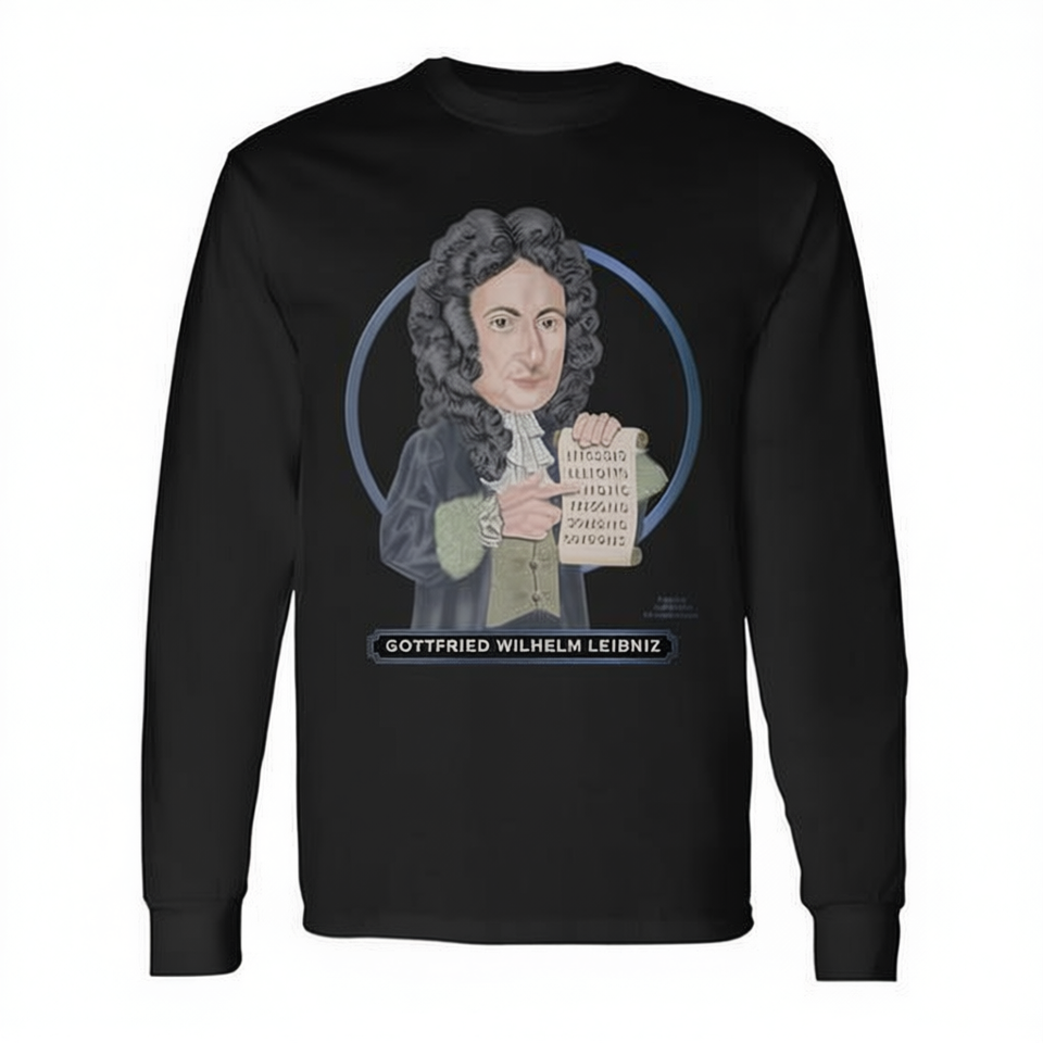 T-shirt a maniche lunghe Gottfried Wilhelm Leibniz, scienza, filosofia, matematica, genio