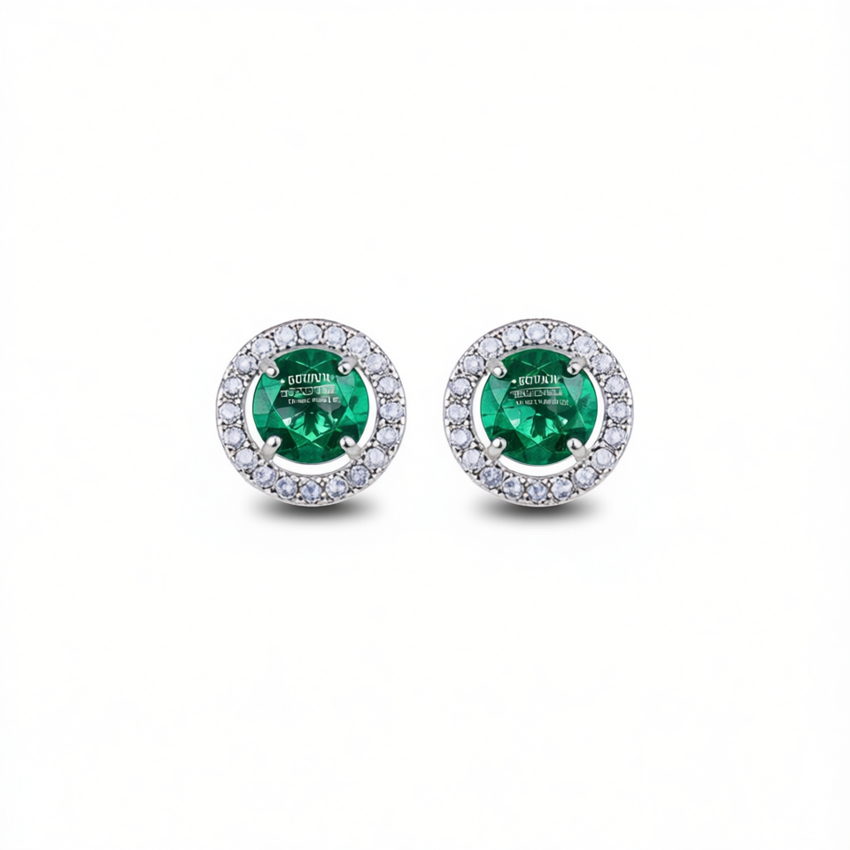 Goumi Green Gemstone Stud Earrings Women's Classic Round Crystal Jewelry Everyday Wear Claw Setting E1960