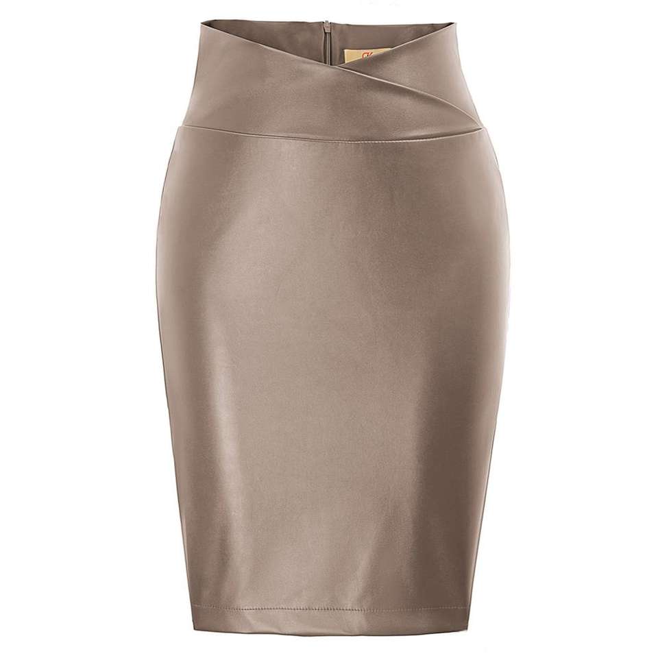 Gonna a tubino da donna in similpelle Grace Karin con vita avvolgente, spacco posteriore e vestibilità aderente sui fianchi