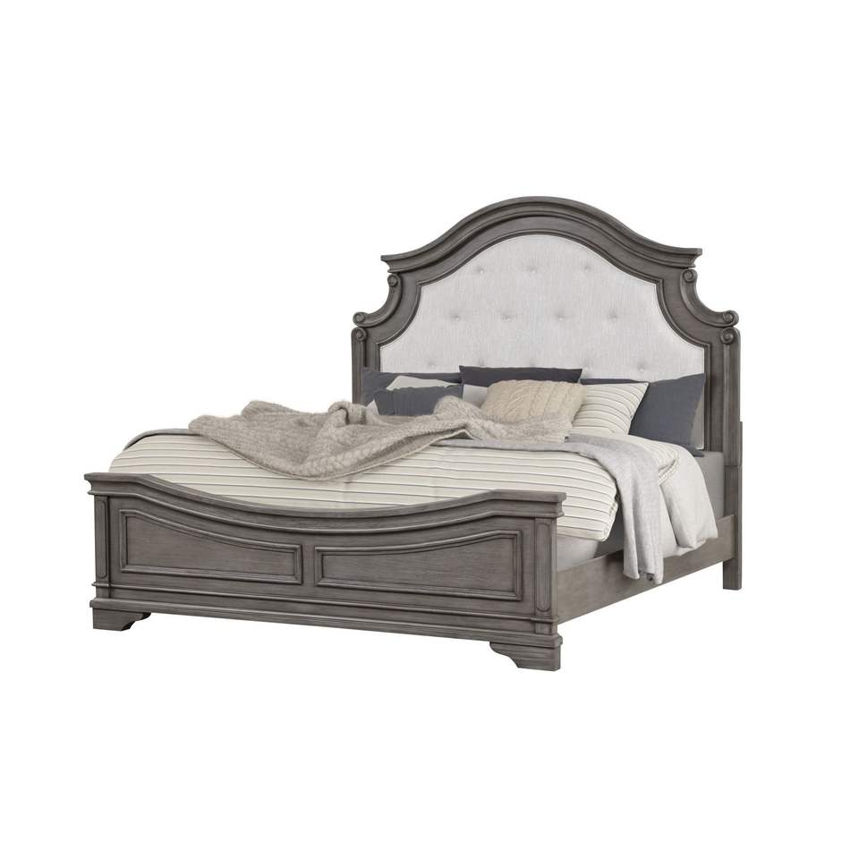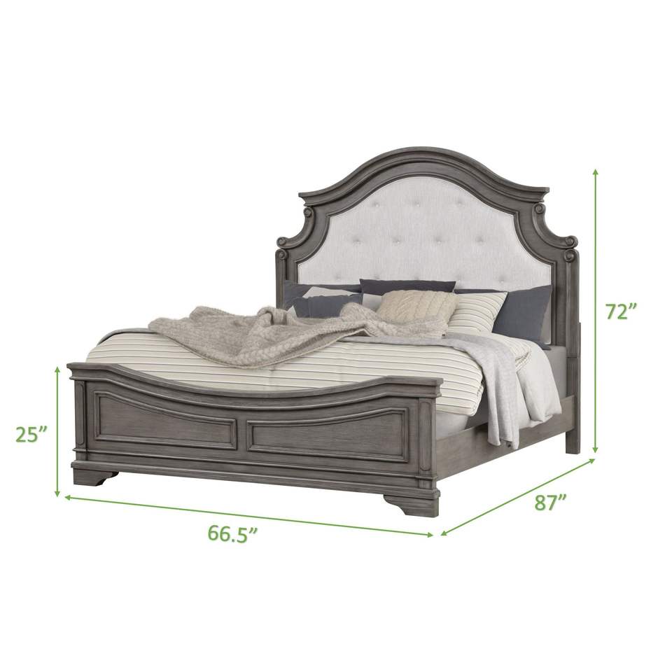 Letto Matrimoniale Grace in Stile Rustico Grigio, Design Tradizionale in Legno