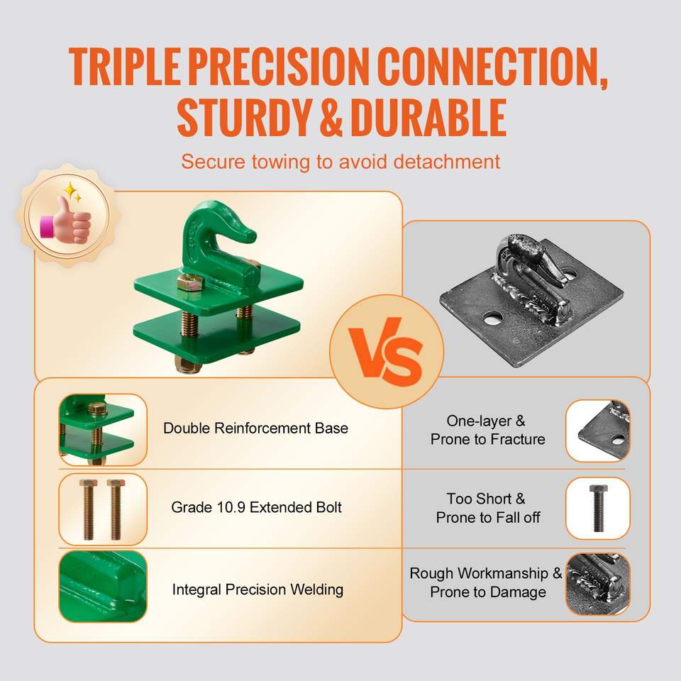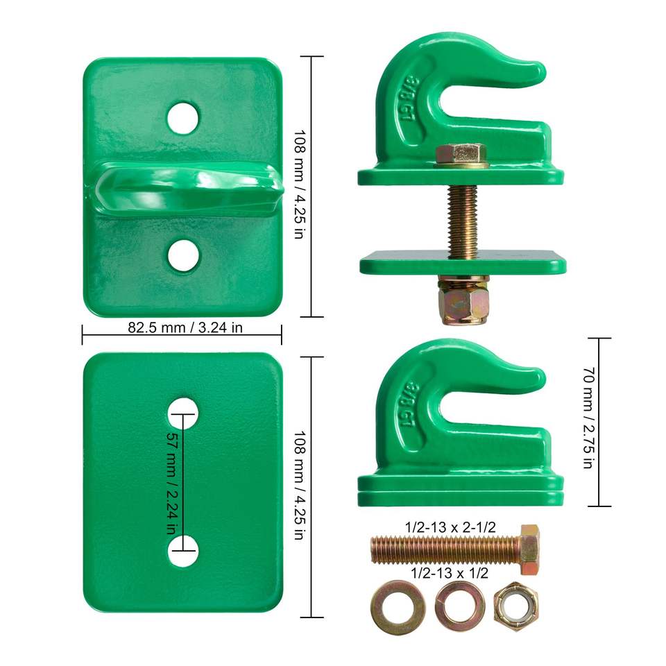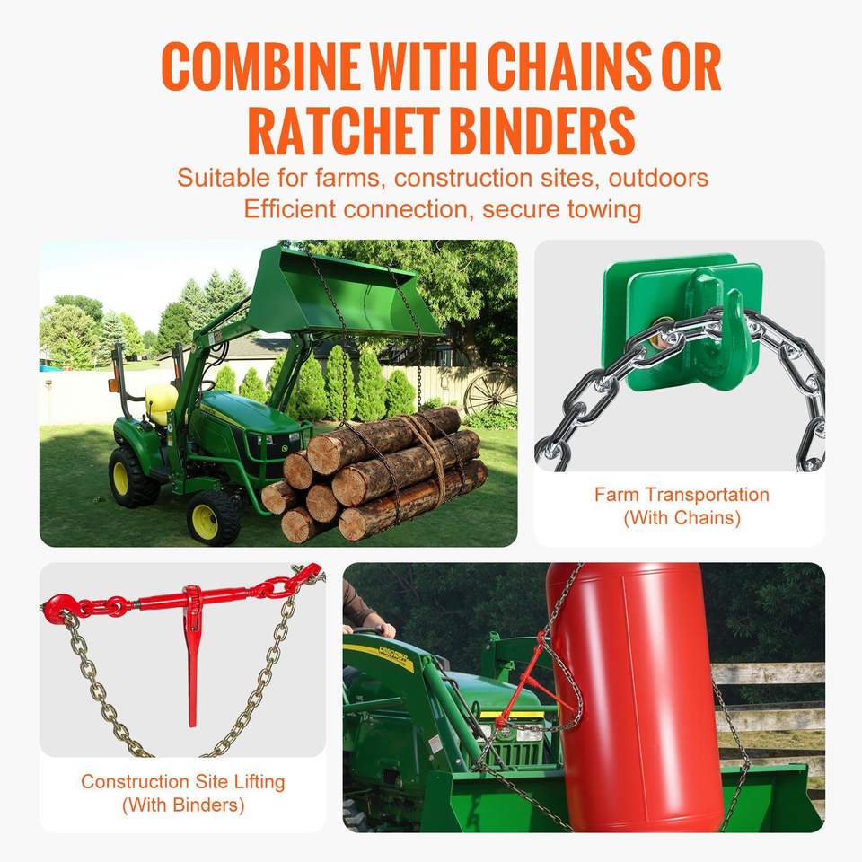 Ganci per benna trattore in acciaio forgiato Grado 70, 3/8 pollici, per impieghi gravosi, con bullone di bloccaggio, 2 pezzi, piastra di supporto, massima resistenza alla rottura, 2 pezzi per traino