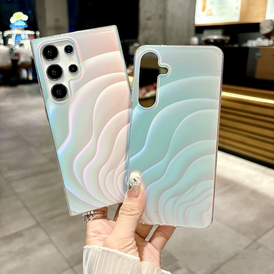 Gradiente Laser onde colorate custodia per telefono antiurto per Samsung Galaxy S25 Ultra A16 A55 A35 A14 Cover posteriore moda