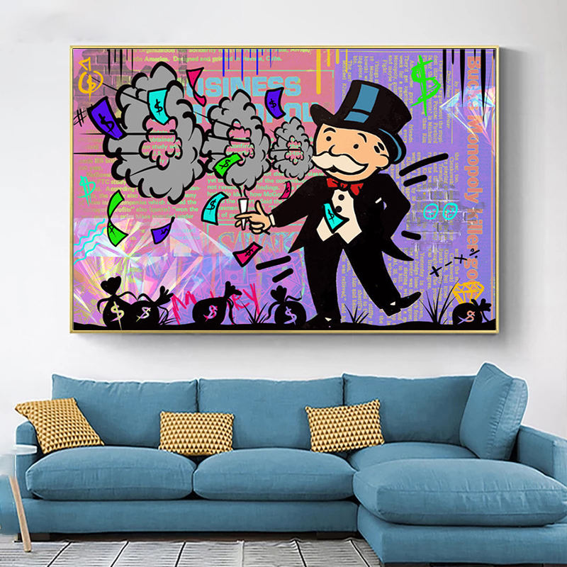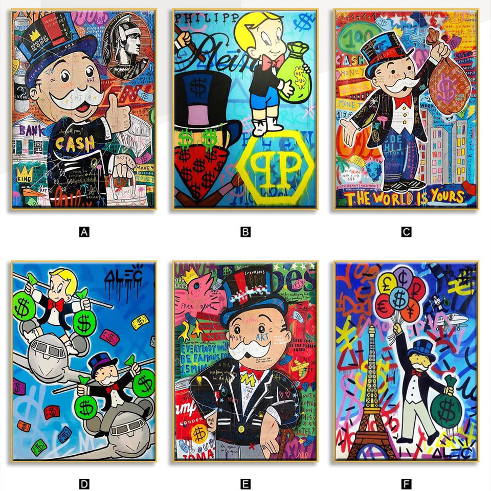 Graffiti Alec Wall Millionaire Money Rich Man Street Poster Prints Monopoly Motivation Custom Printed Art Canvas Framed