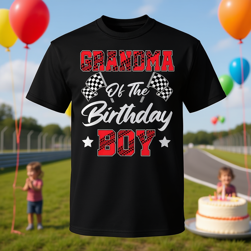 T-shirt da corsa Grandma Of The Birthday Boy per adulti, unisex, girocollo, manica corta, stampa serigrafica
