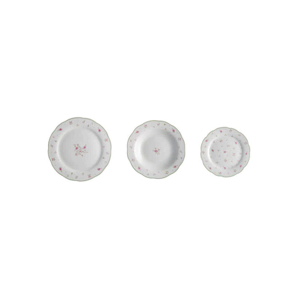Set di Piatti in Porcellana Rosa Nonna Rosa, Collezione di Stoviglie da 18 Pezzi