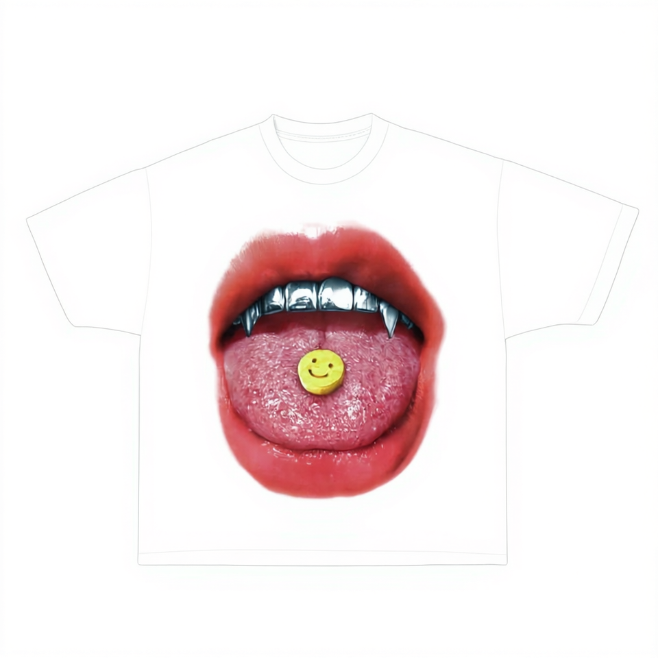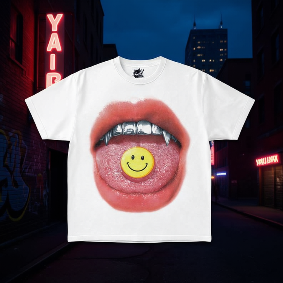 T-Shirt Oversize con Grafica, Design Streetwear Y2k, Top Unisex Bianco