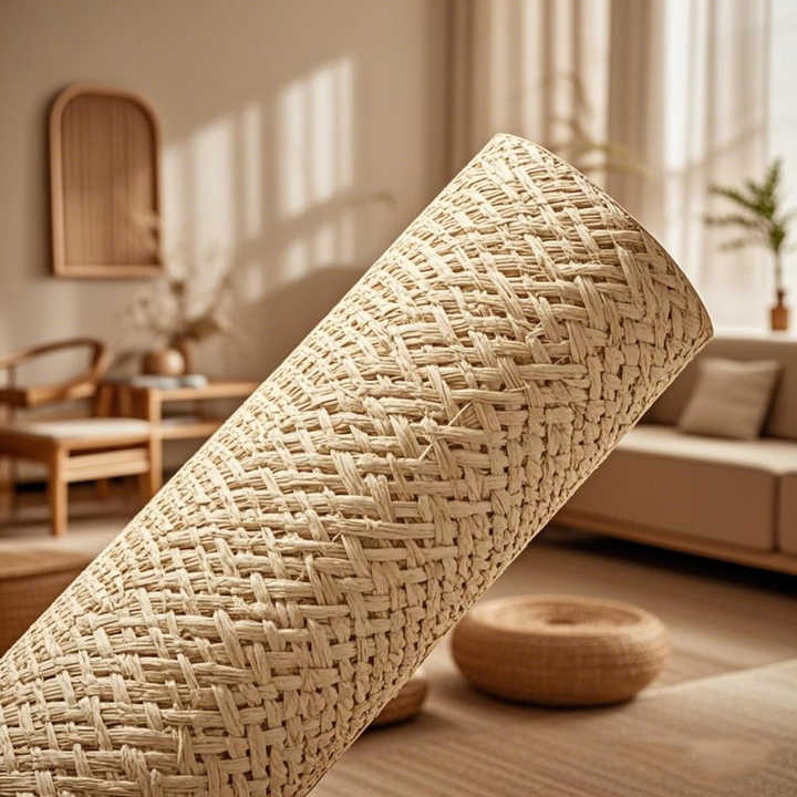Rotoli di Carta da Parati in Tessuto d'Erba Naturale, Decorazione Murale in Paglia Intrecciata, Rivestimento Murale in Lino Naturale