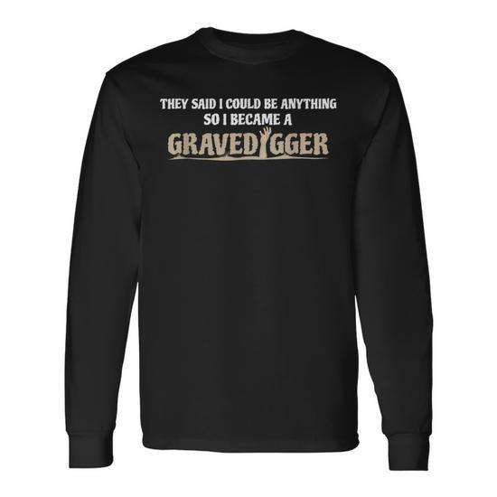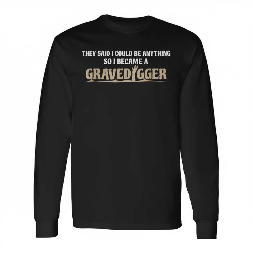 Maglietta a maniche lunghe Gravedigger con stampa 'They Said I Could Be Anything', abbigliamento promozionale