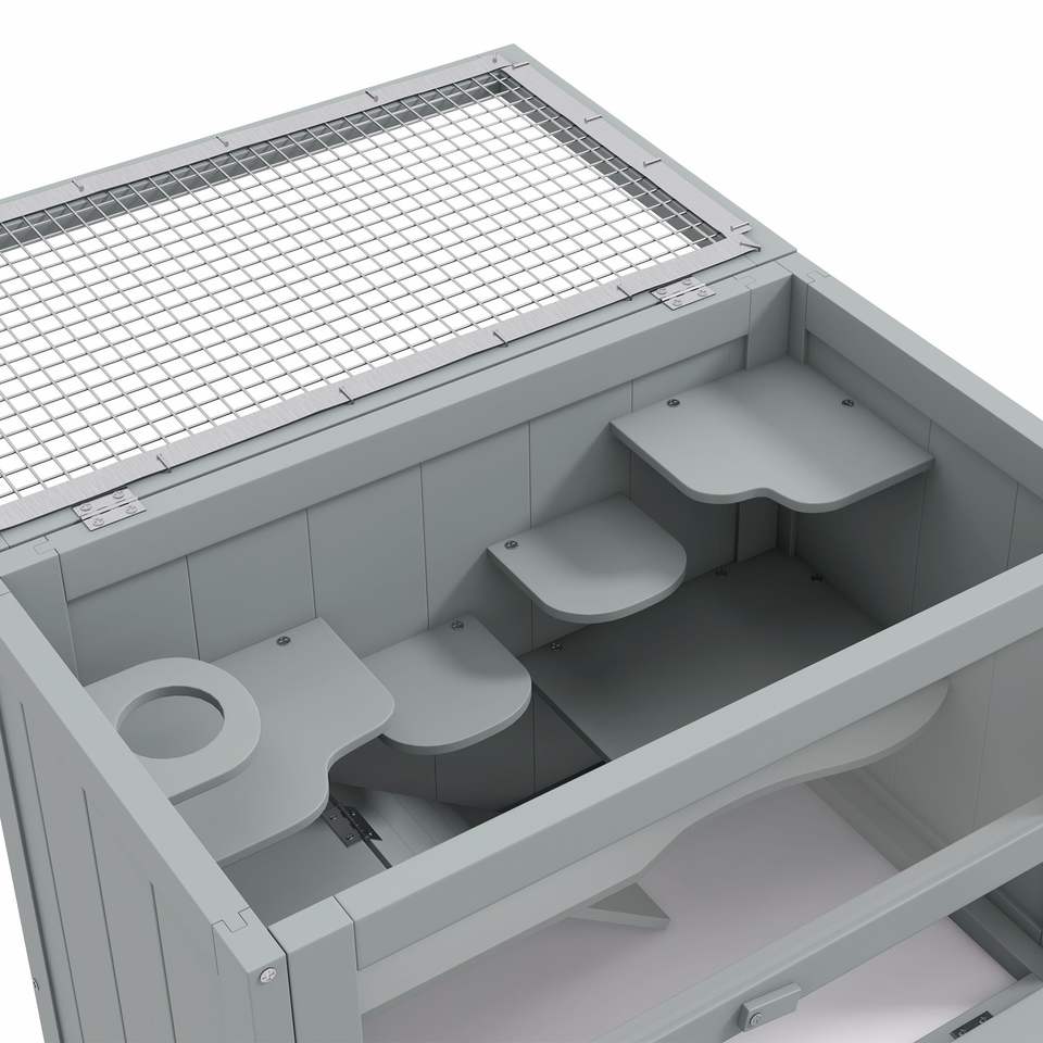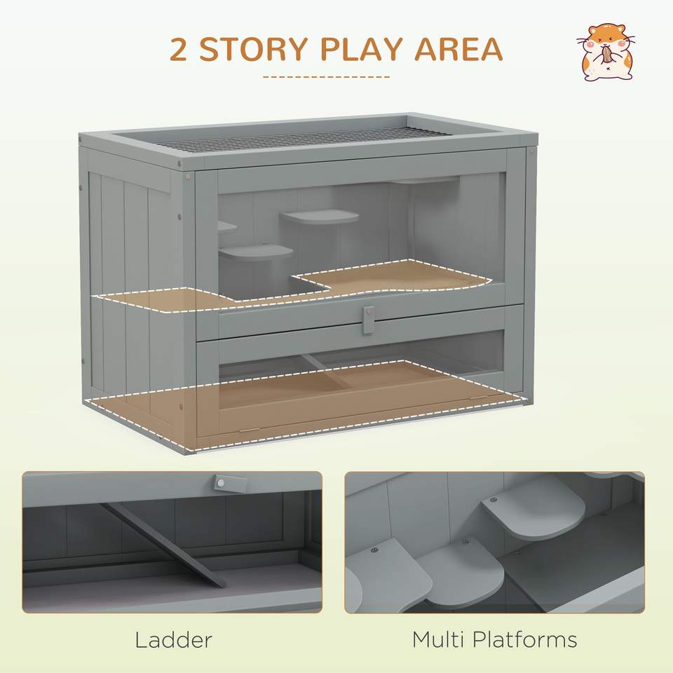 Gabbia per Criceti a 2 Livelli Grigia con Porta Superiore Apribile, Scala e Ripiano - Casetta per Animali