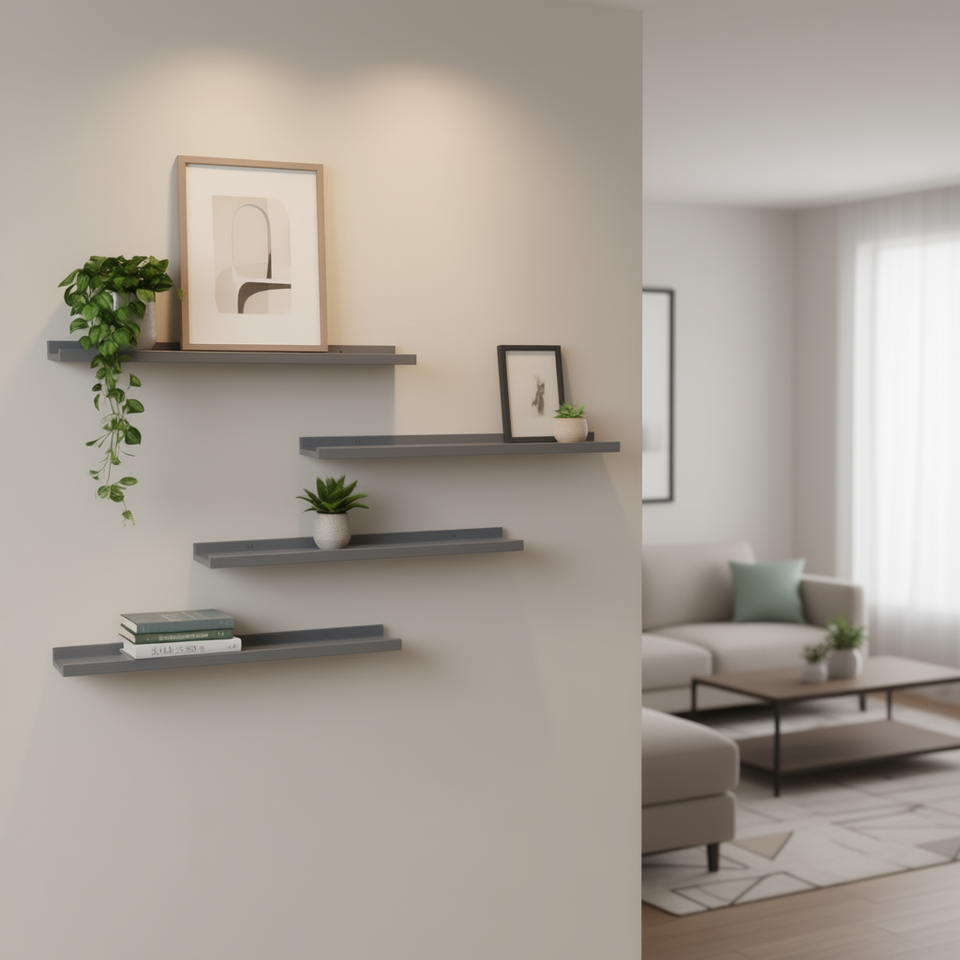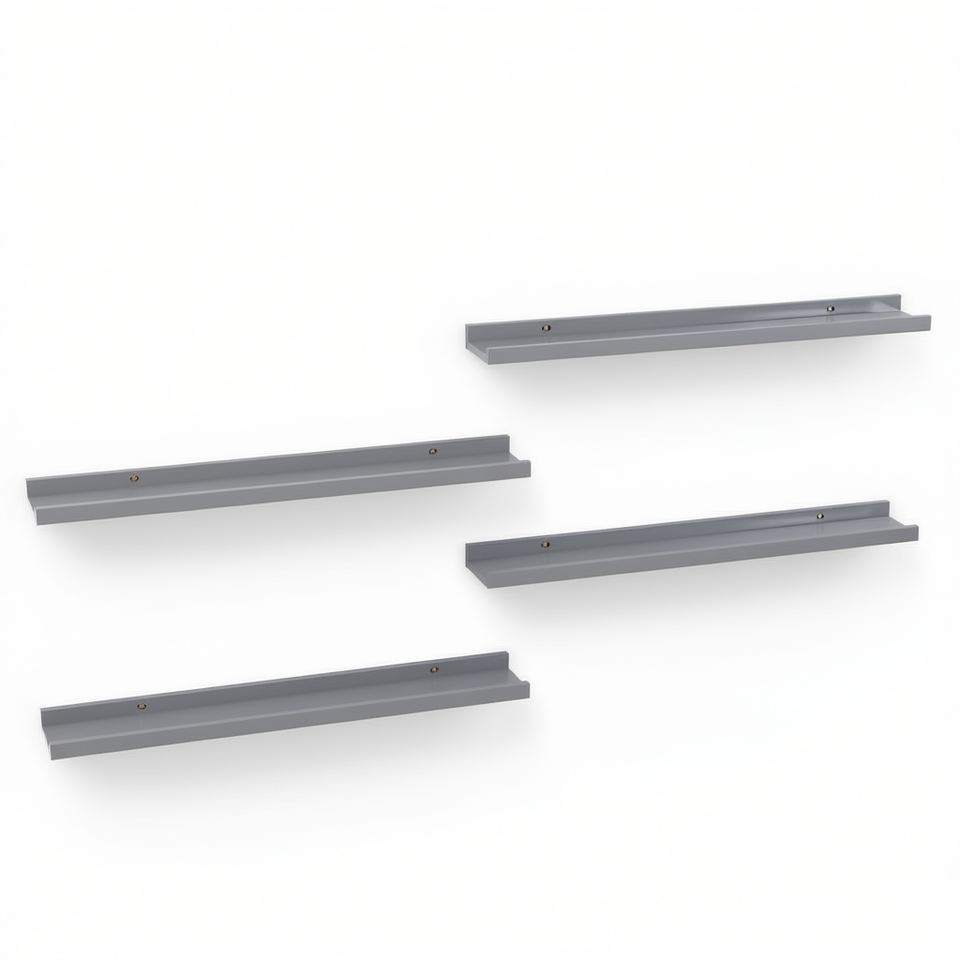 Mensole da parete grigie in 4 pezzi, 23,6x3,5x1,2 pollici, mensole galleggianti in alluminio per soggiorno, design minimalista