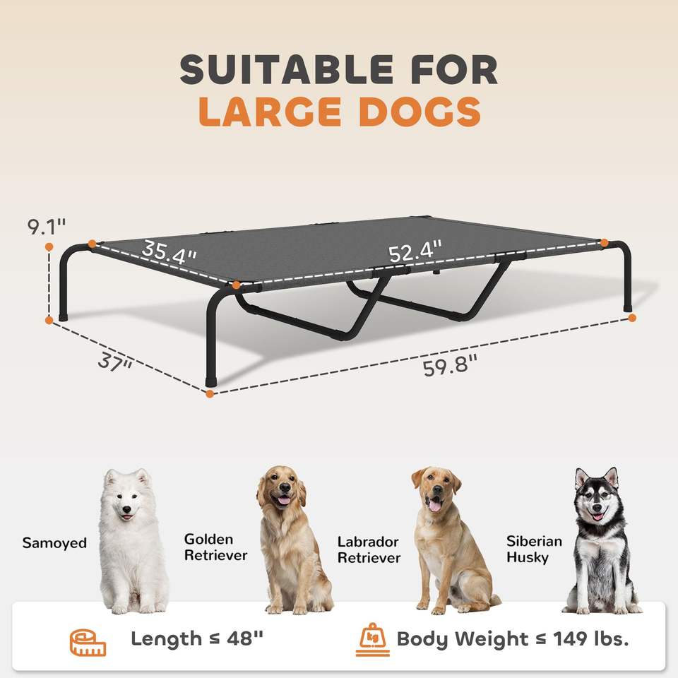 Cuccia rialzata grigia da 60 pollici per cani di taglia grande - Letti resistenti per animali domestici