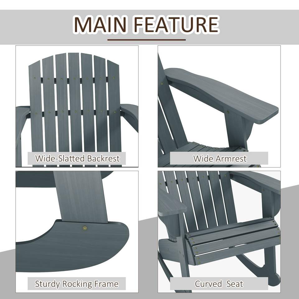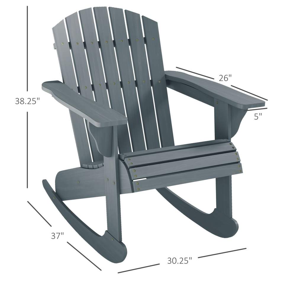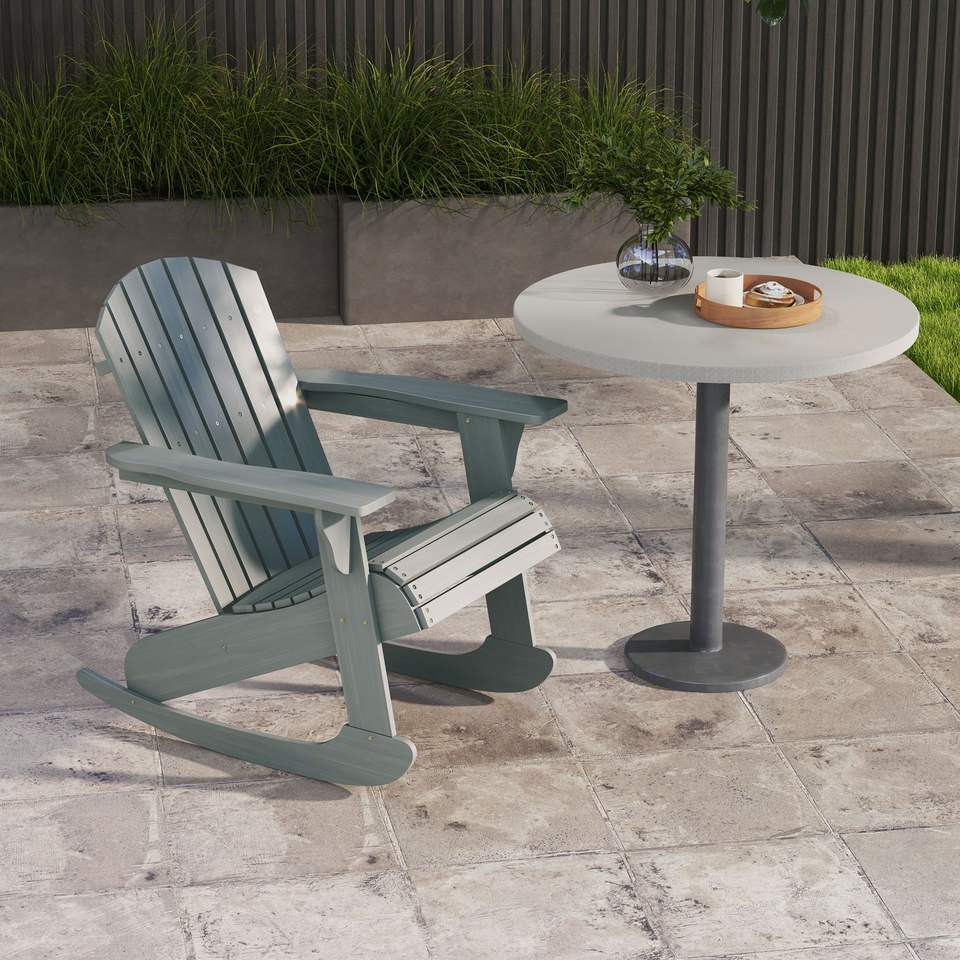 Gray Adirondack Rocking Chair with Fanned Back Wooden Outdoor Lounge Seating for Fire Pit Slatted Rocker