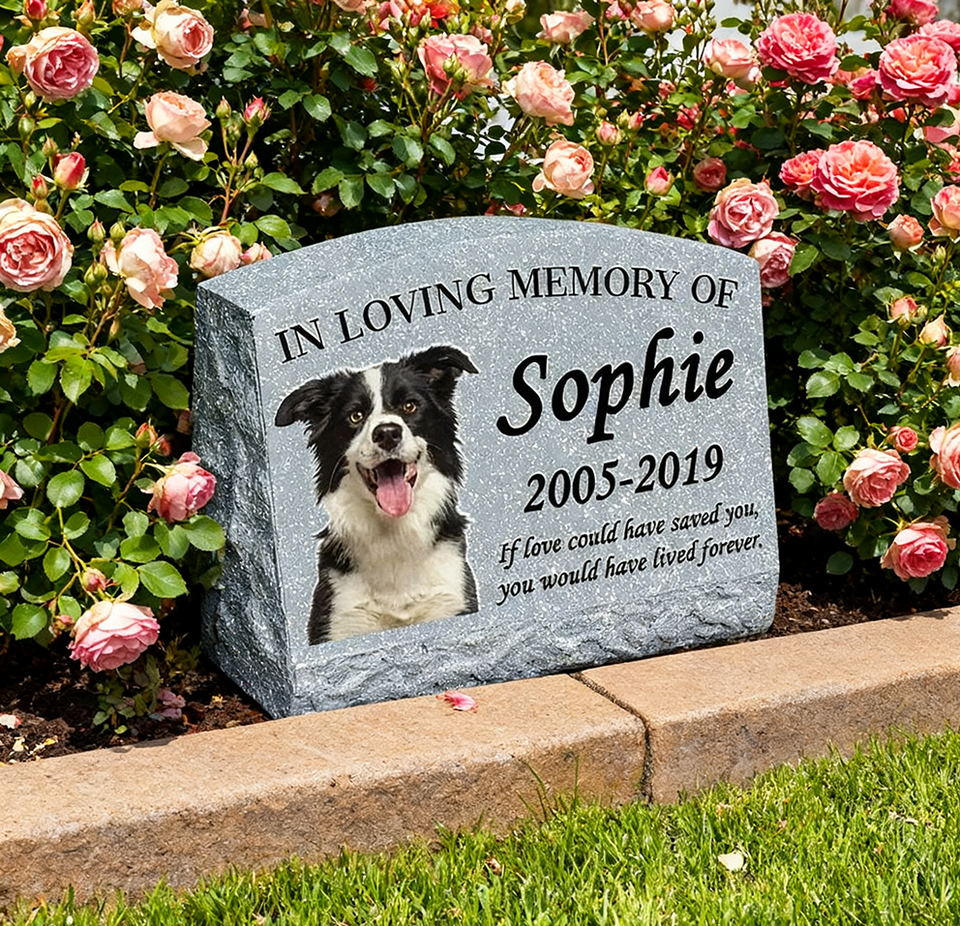Statuetta Commemorativa per Animali Domestici in Resina con Sfondo Grigio, Dipinta a Mano, Texture Irregolare Incisa, Stile Artistico