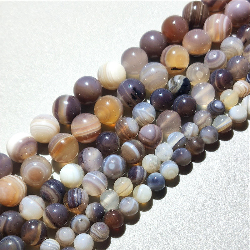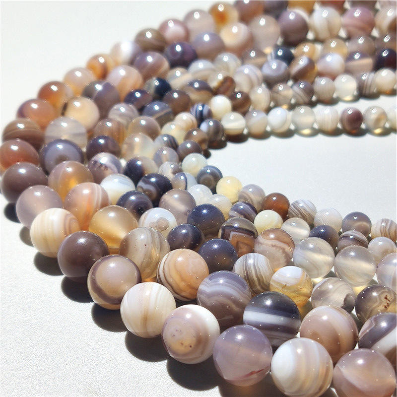 Grigio Botswana agata, gemma a strisce di calcedonio perline per la creazione di gioielli fai da te 6mm 8mm 10mm 12mm