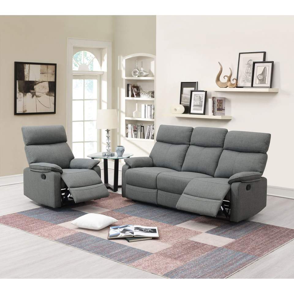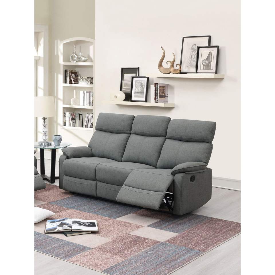 Divano Reclinabile in Tessuto Grigio Effetto Iuta, 1 Pezzo, Manuale, Set di Divani e Poltrone per Soggiorno