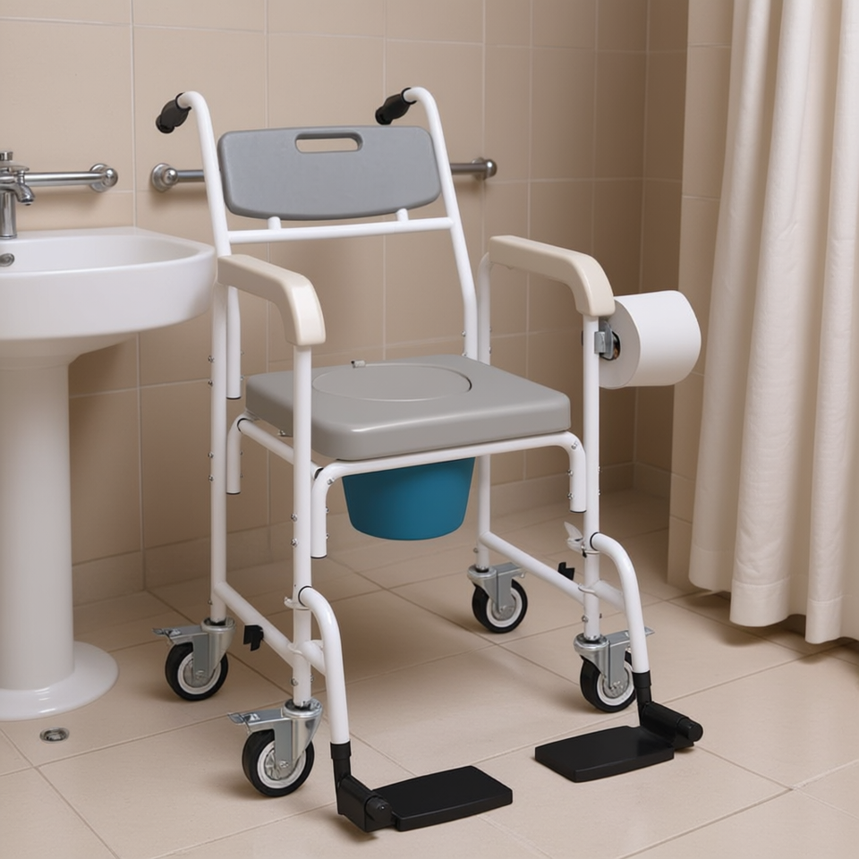 Commode Wheelchair With Wheels 250 Kg Capacity For Bathrooms Senior Safety Equipment