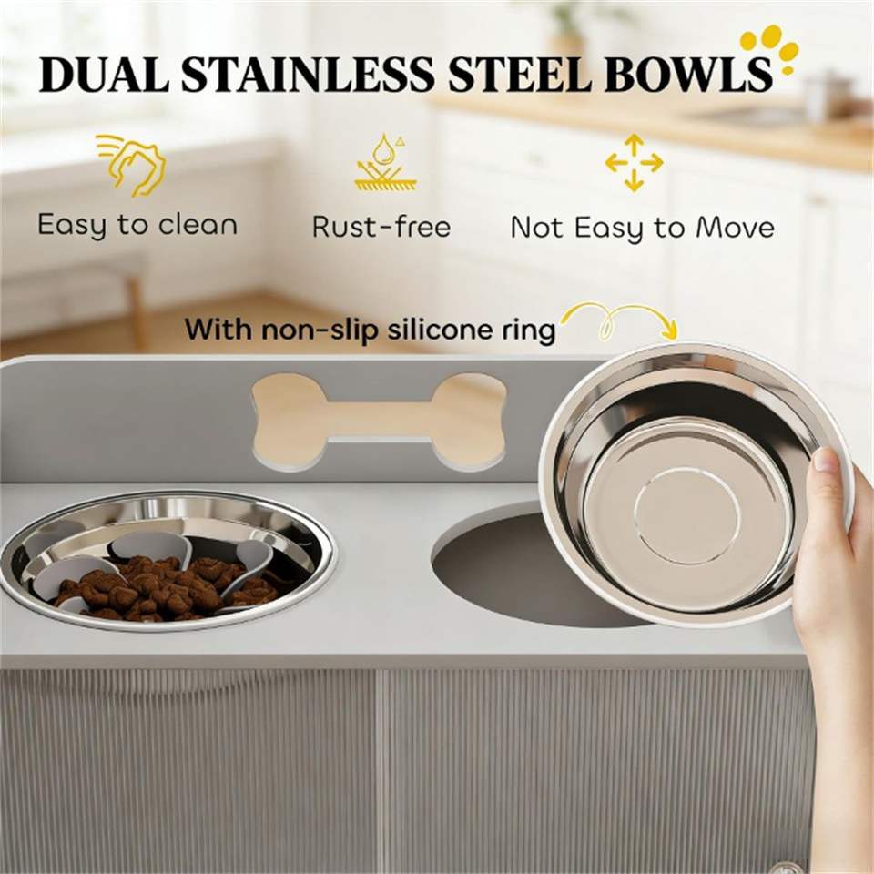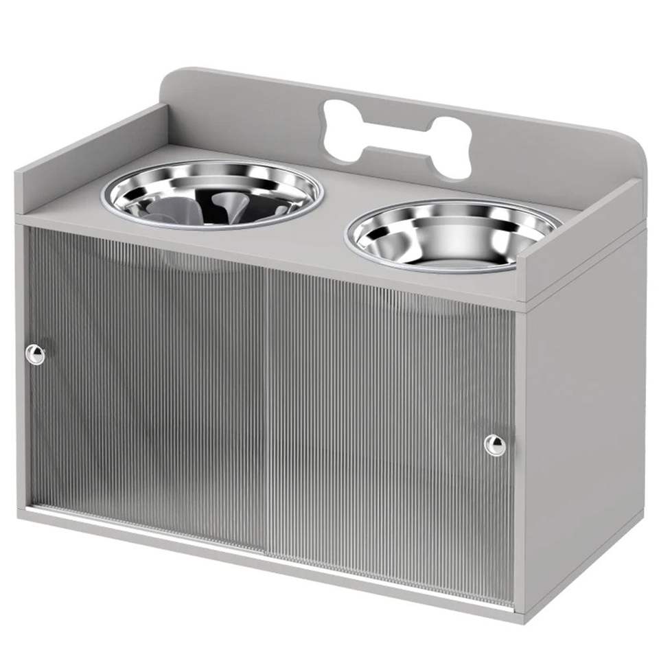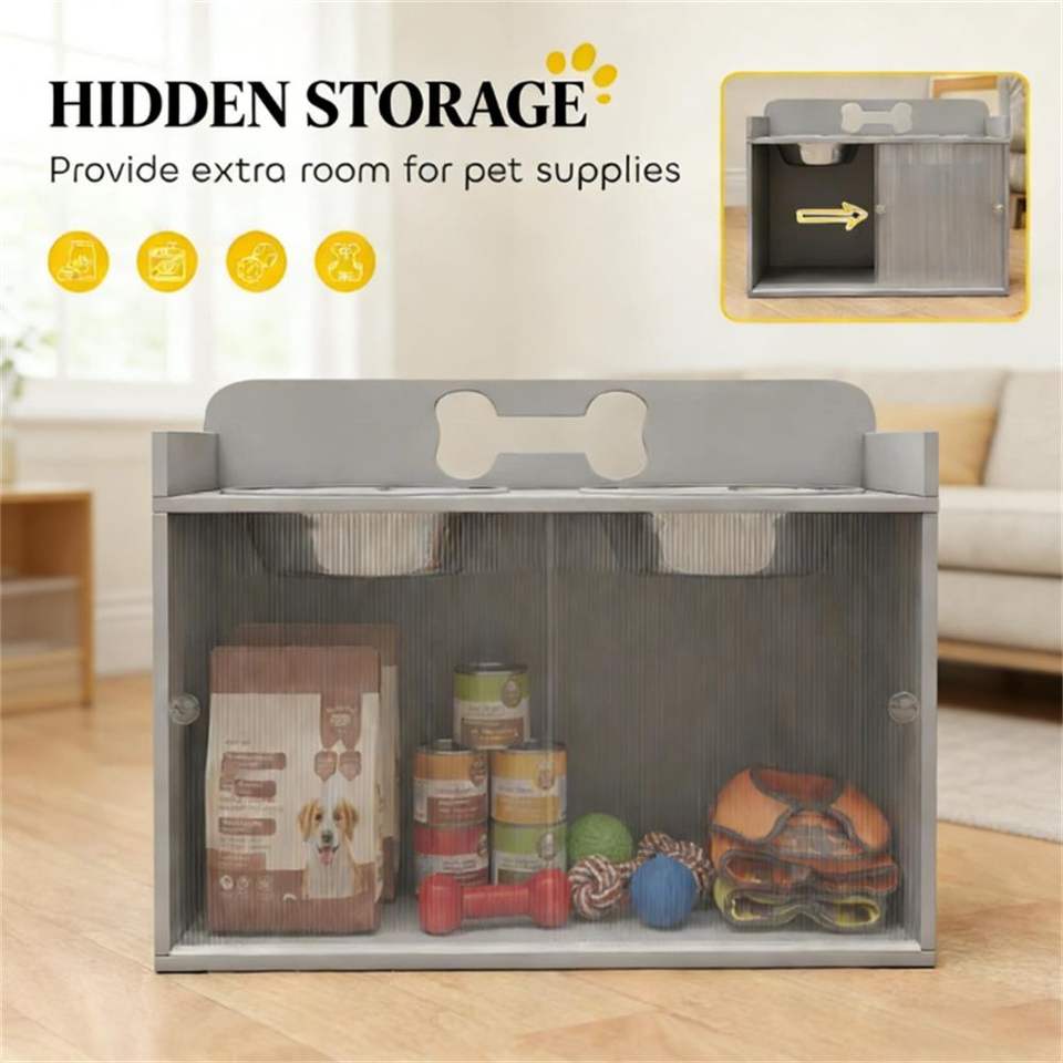 Ciotola rialzata grigia per cani con spazio di archiviazione integrato per alimentatori per animali domestici