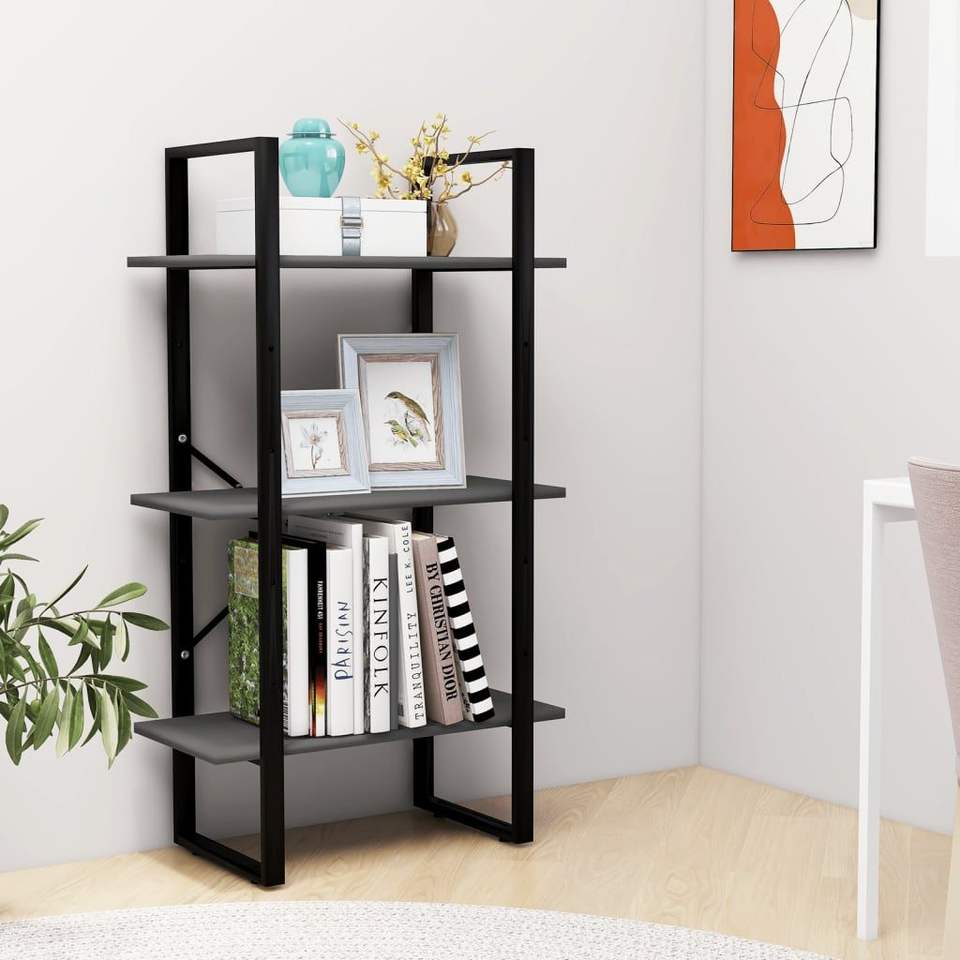 Gray Engineered Wood Bookcase 23.6"x11.8"x41.3" Storage Shelf