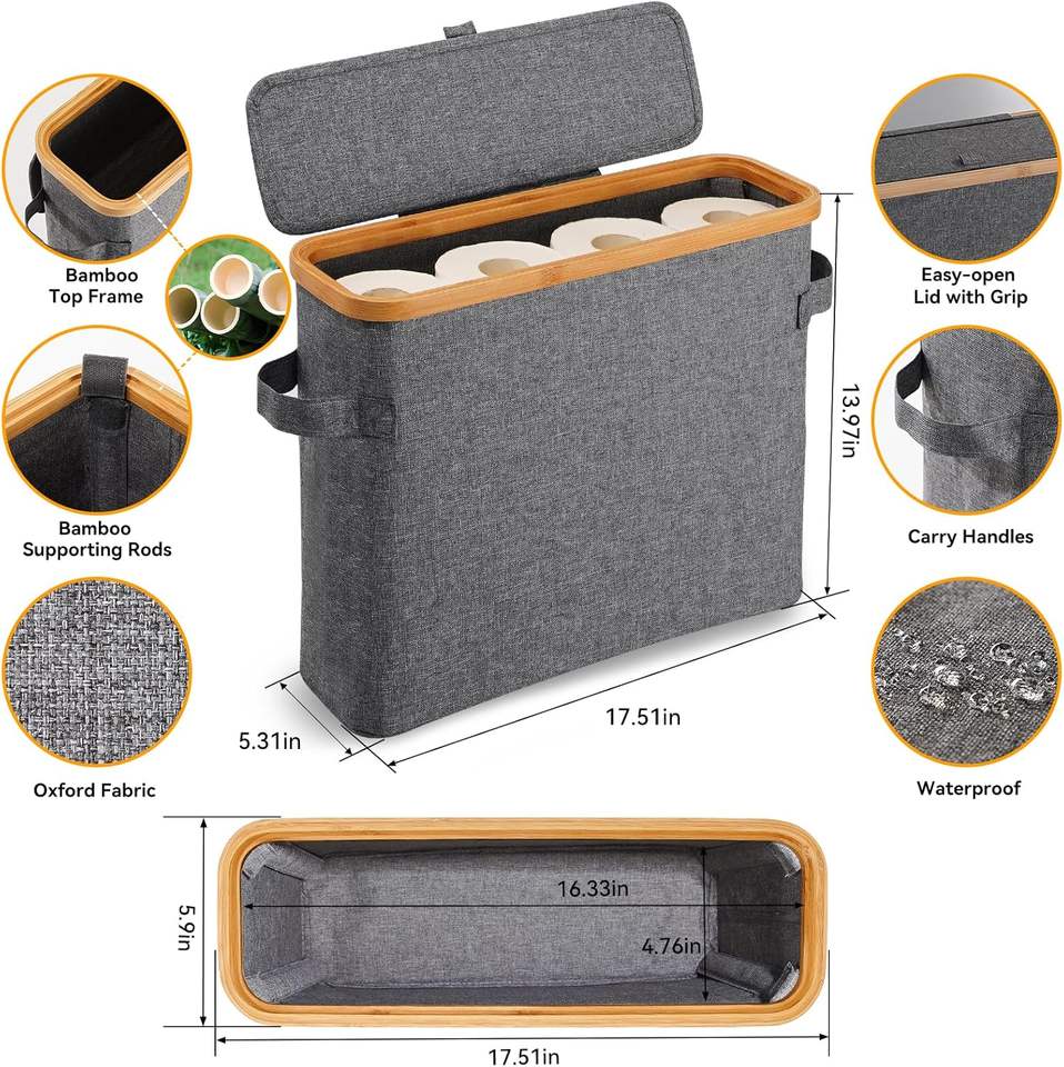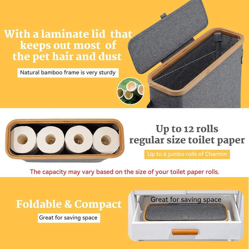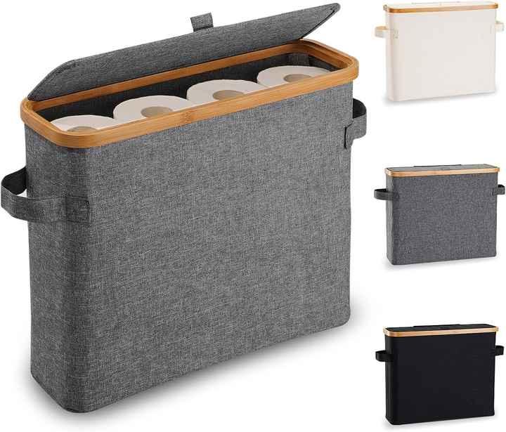 Organizzatore di carta igienica grigio pieghevole in bambù con porta manici per bagno porta carta igienica