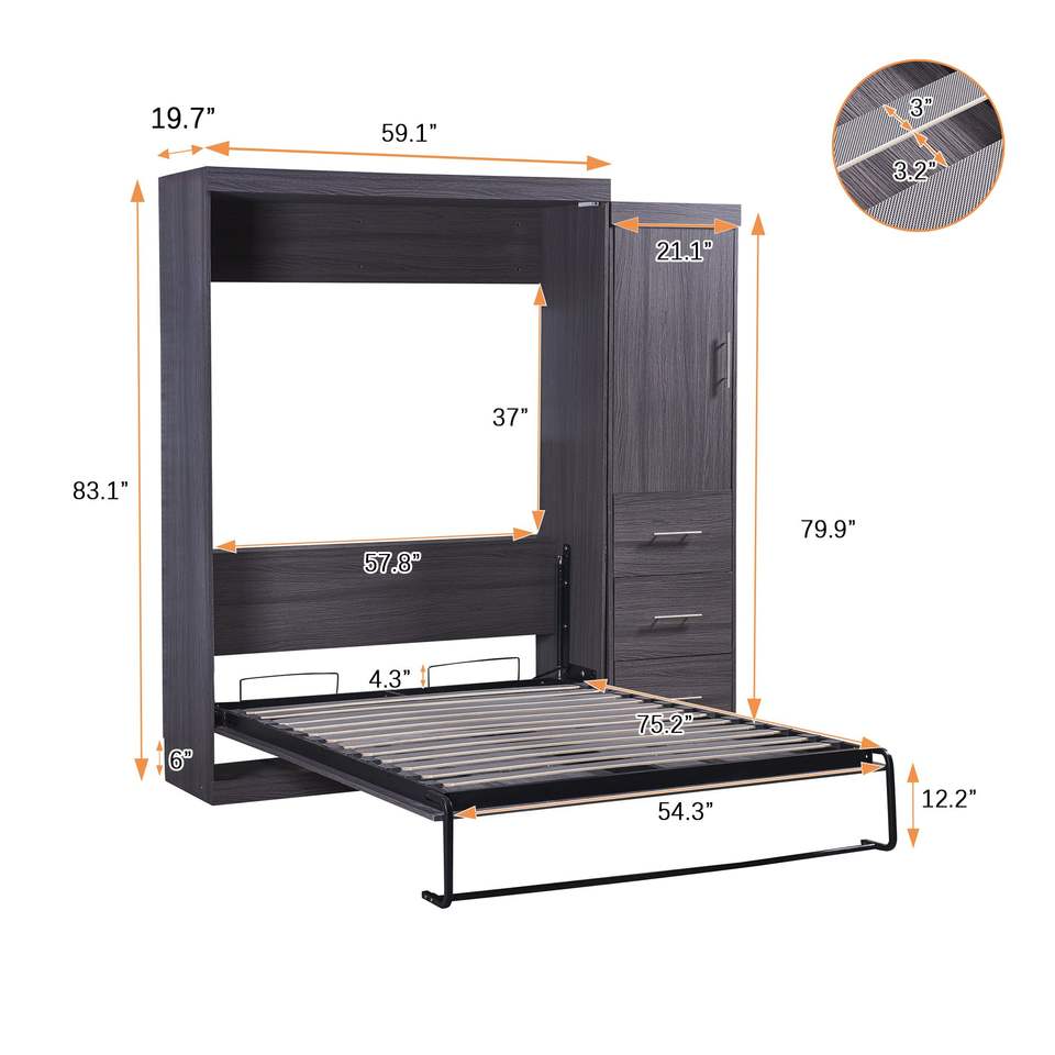 Gray Full-Size Murphy Bed with Wardrobe and Drawers Convenient Storage That Can Be Folded Into a Cabinet