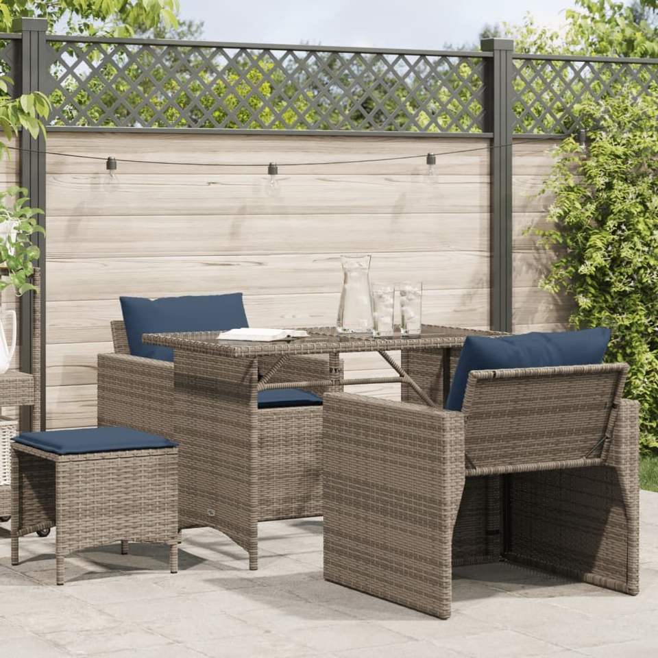 Gray Garden Sofa Set with Navy Blue Cushions