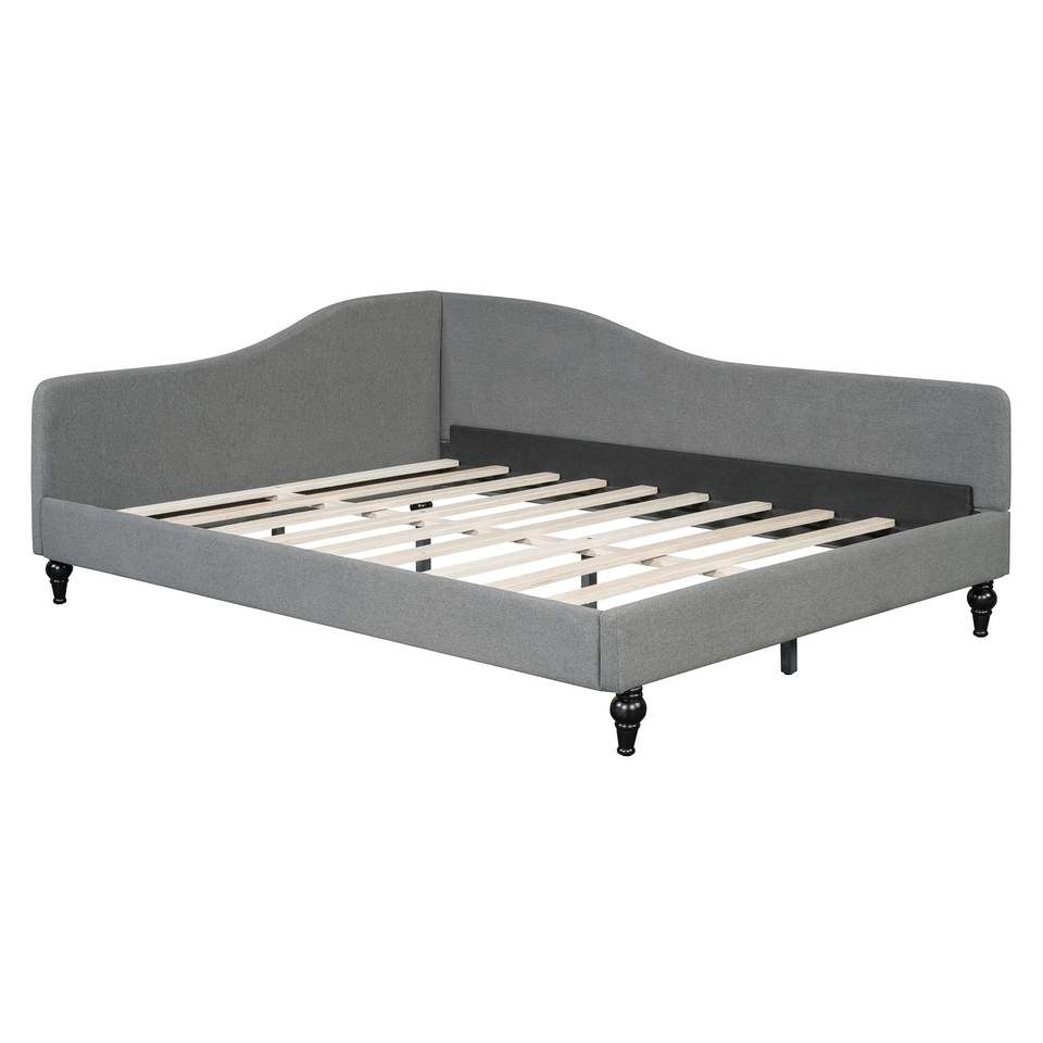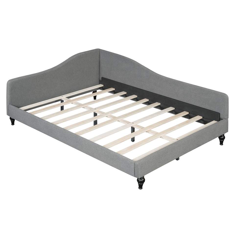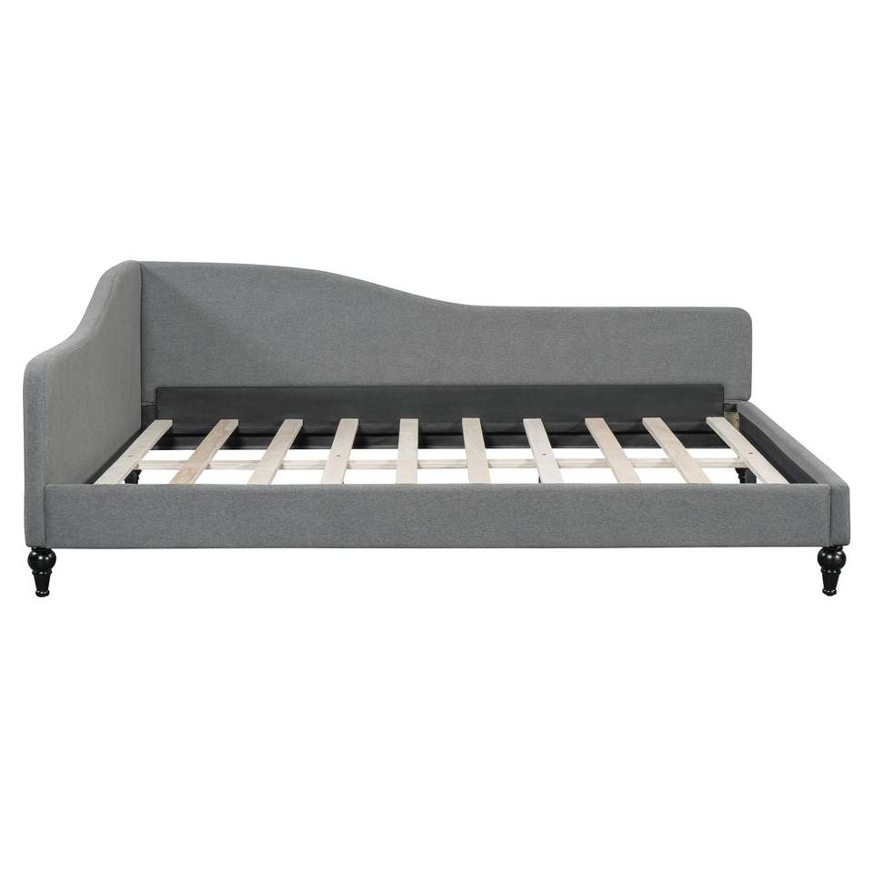 Divano letto a L in lino grigio con gambe in legno massello, misura Full Size SF000146AAE