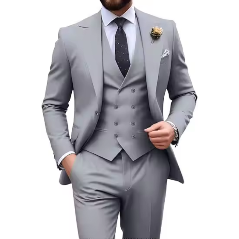 Gray Men's Suit Costume 3 Pieces (Jacket+Vest+Pants) Slim Fit Suit Men Formal Tuxedo Suit Casual Wedding Man Dance Dress Blazer
