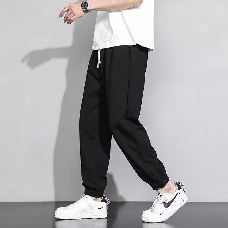 Pantaloni sportivi da uomo grigi a gamba larga, tinta unita, taglie forti, casual, primavera autunno, per il mercato estero