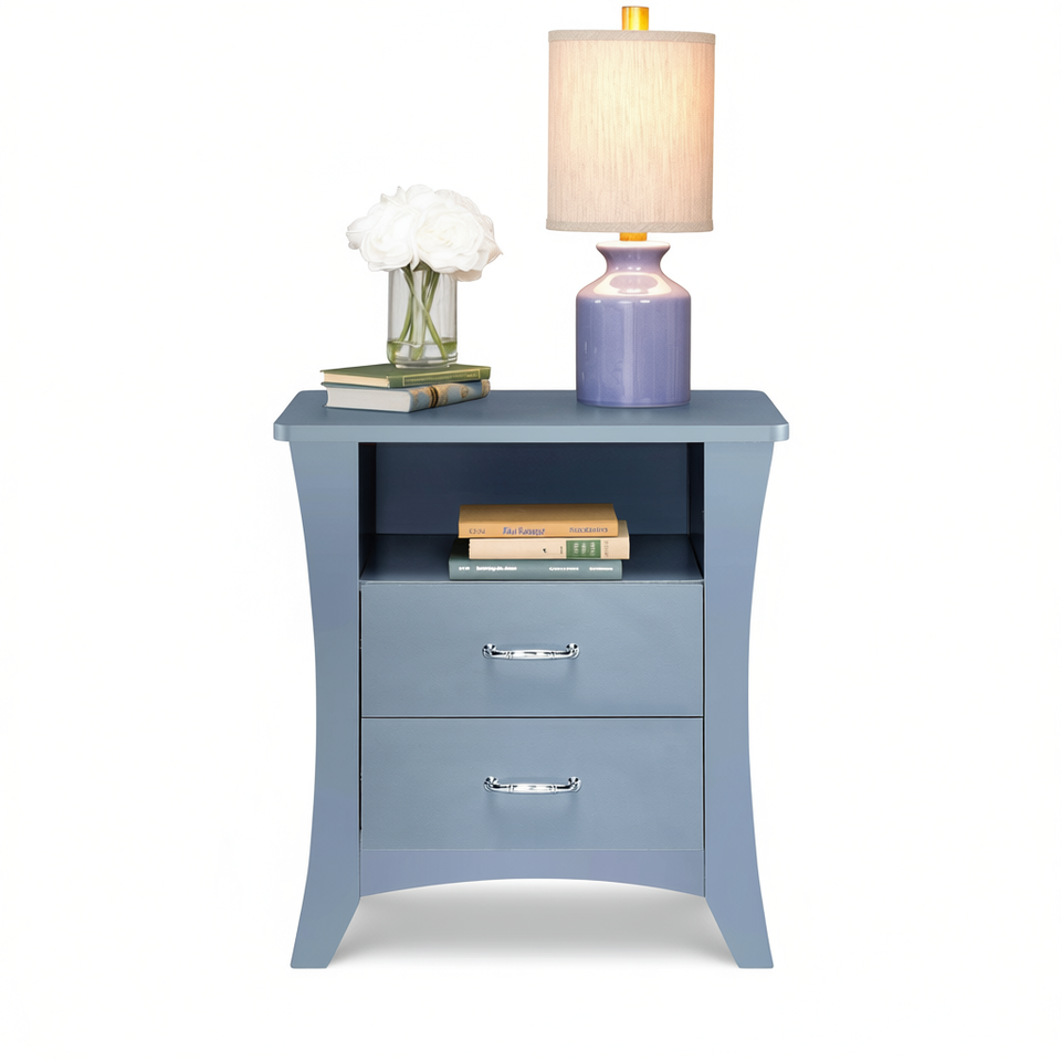 Comodino Grigio con 2 Cassetti e Ripiani Aperti, Elegante Arredo Camera da Letto, Design Moderno con Piano in Legno