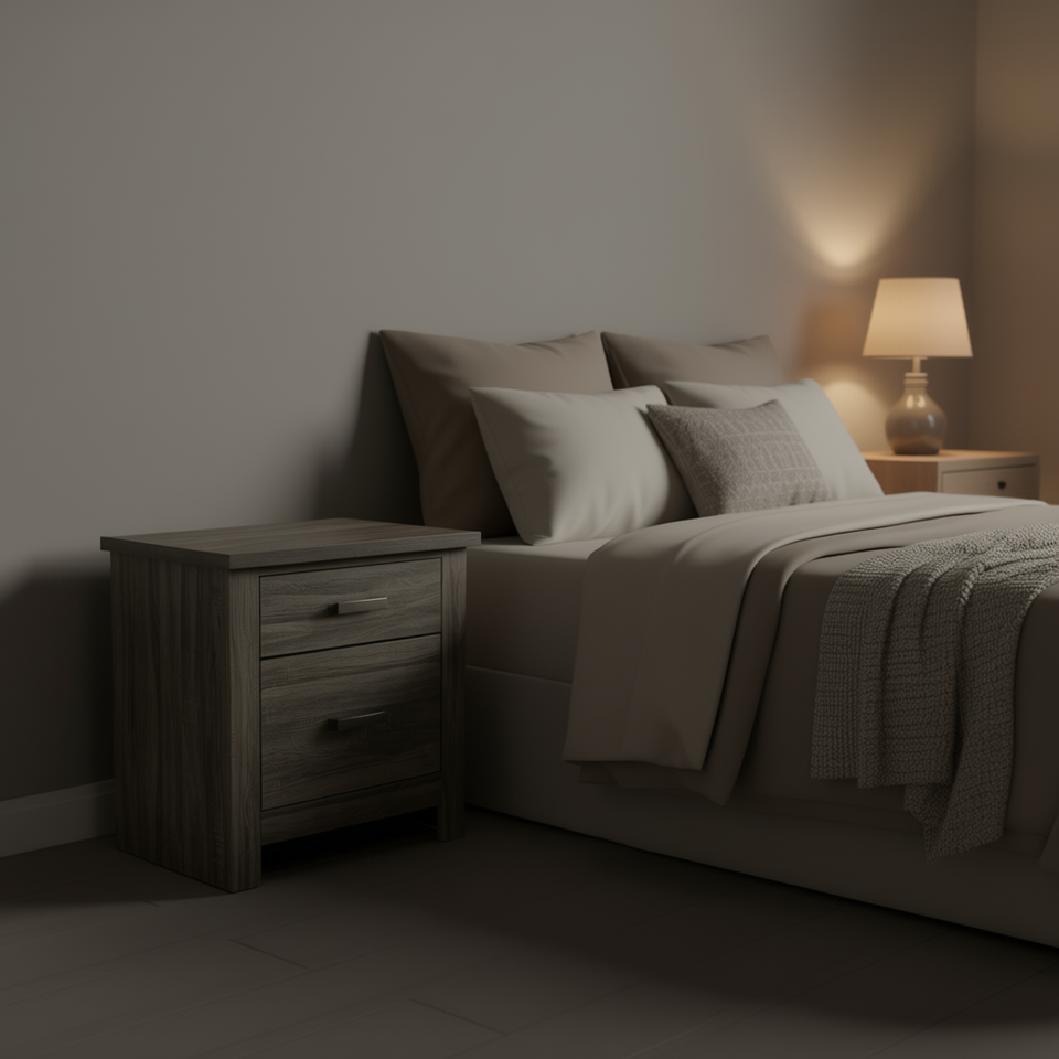 Gray Oak Nightstand 2 Drawer Storage Modern Minimalist Bedroom Furniture