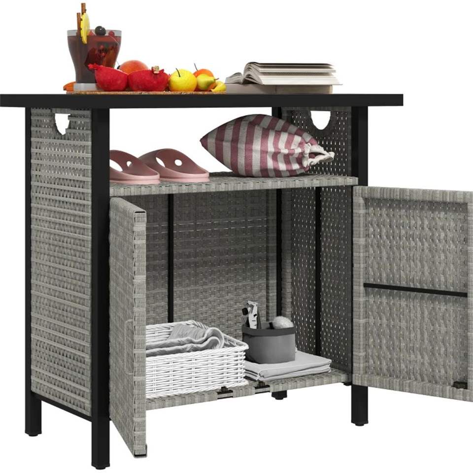 Armadio da Esterno Grigio con Tavolo da Bar e Portasciugamani