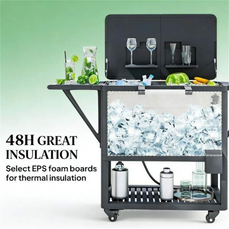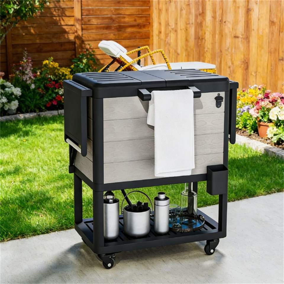 Congelatore mobile grigio per esterni con ruote per secchiello ghiaccio
