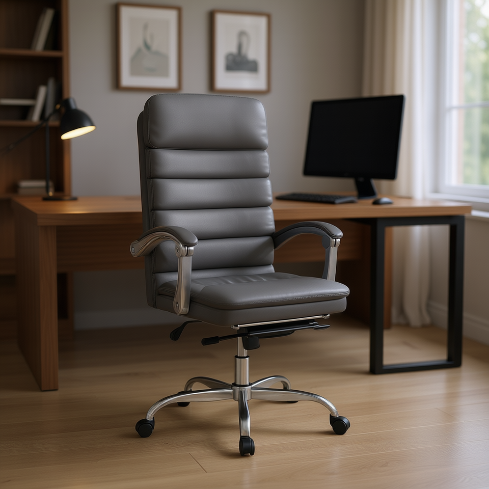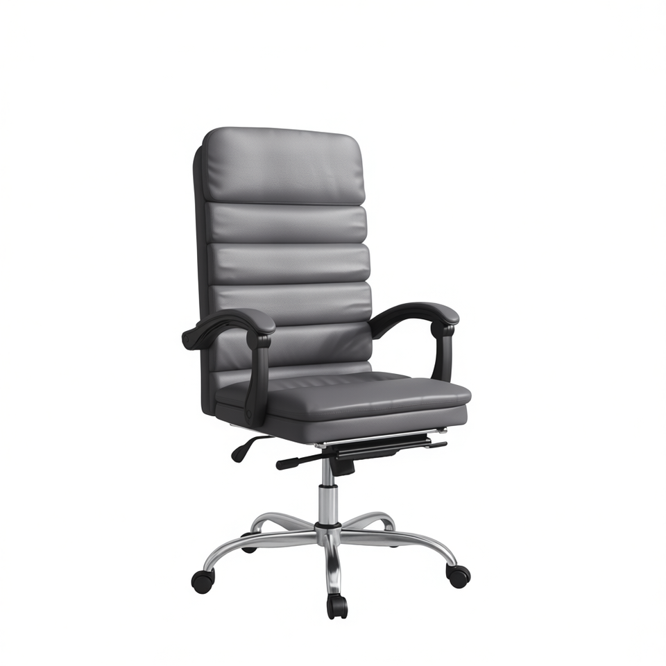 Sedia da Ufficio in Pelle PU Grigia con Funzione Massaggio, Telaio in Metallo, Base in Alluminio, Design Girevole
