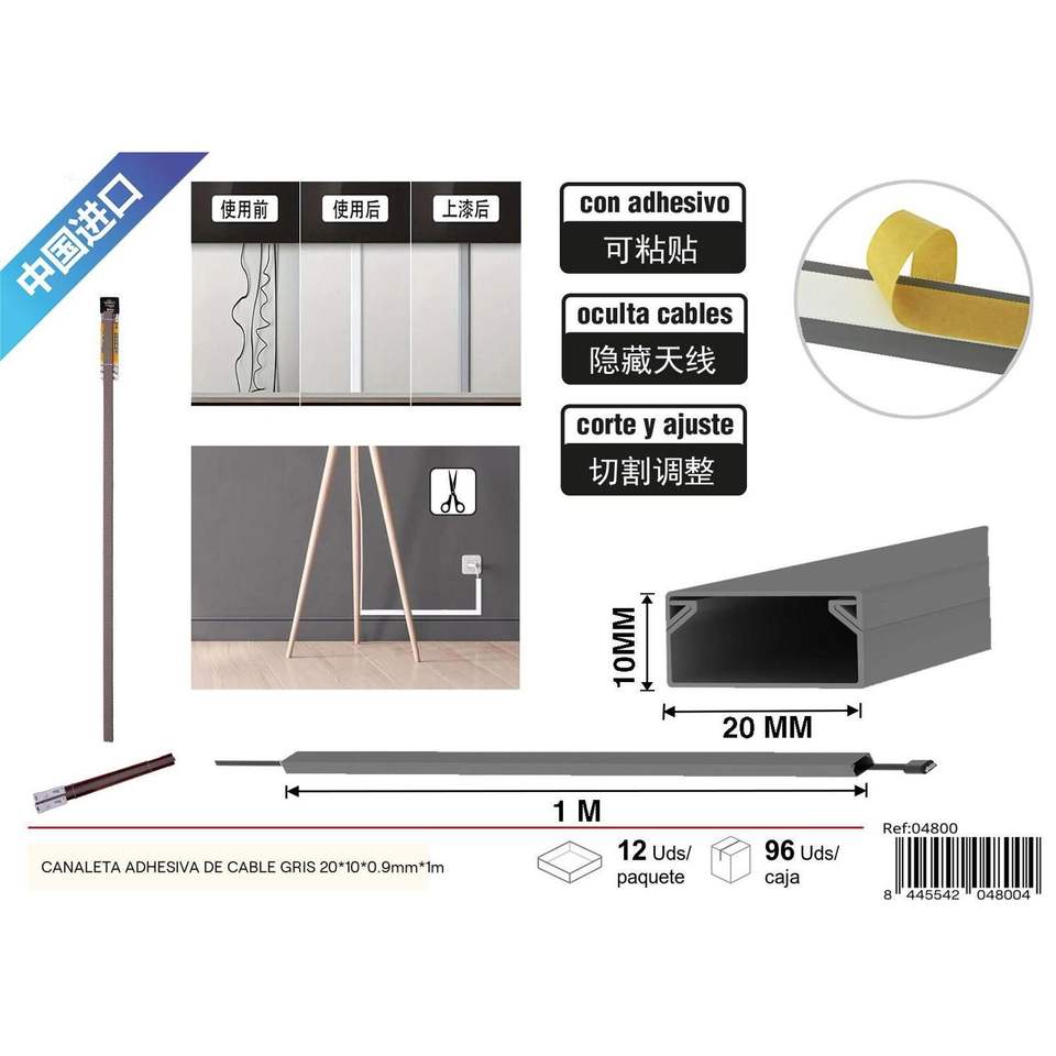 Cavo adesivo grigio PVC 20*10*0.9mm 1 metro accessori Hardware condotti di cablaggio in plastica