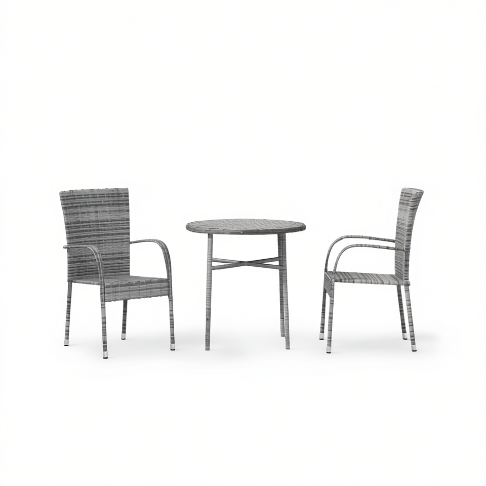 Set da Pranzo da Giardino in Polyrattan Grigio, Arredamento Moderno da Esterno Compatto con Telaio in Metallo per 2 Persone
