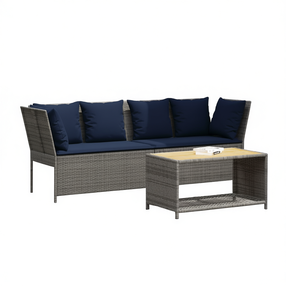 Gray Poly Rattan Patio Sofa Set With Cushions Outdoor Garden Furniture Contemporary Style
