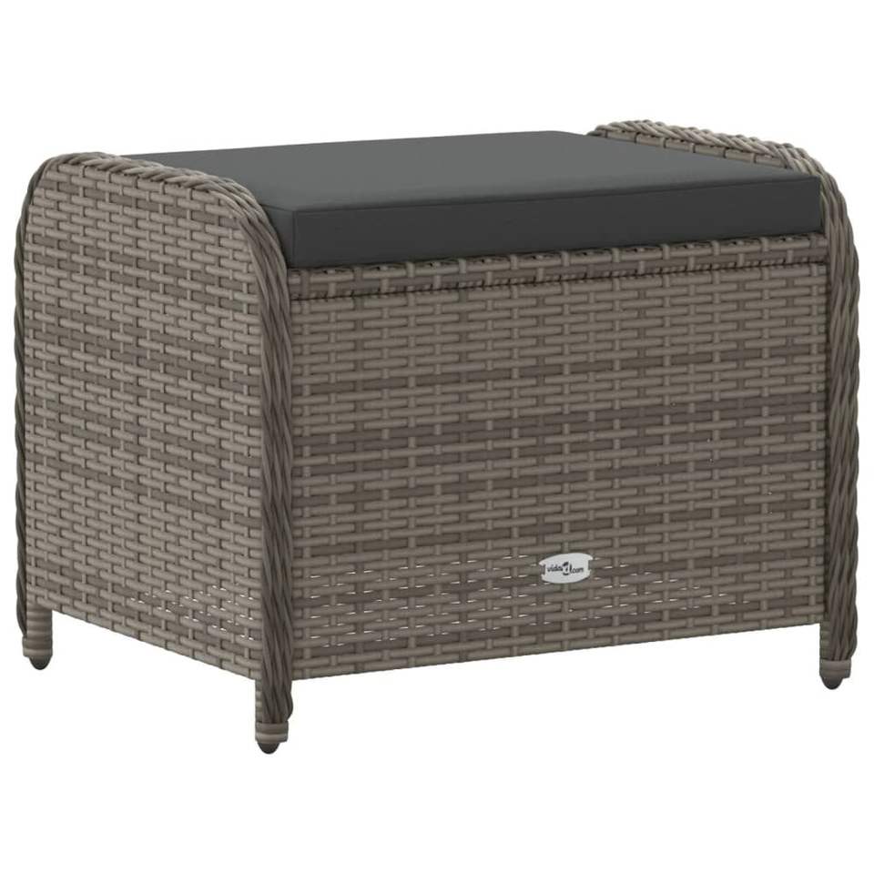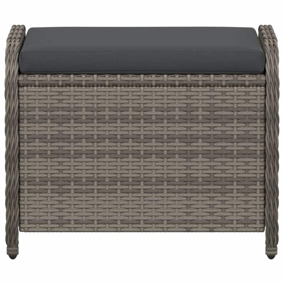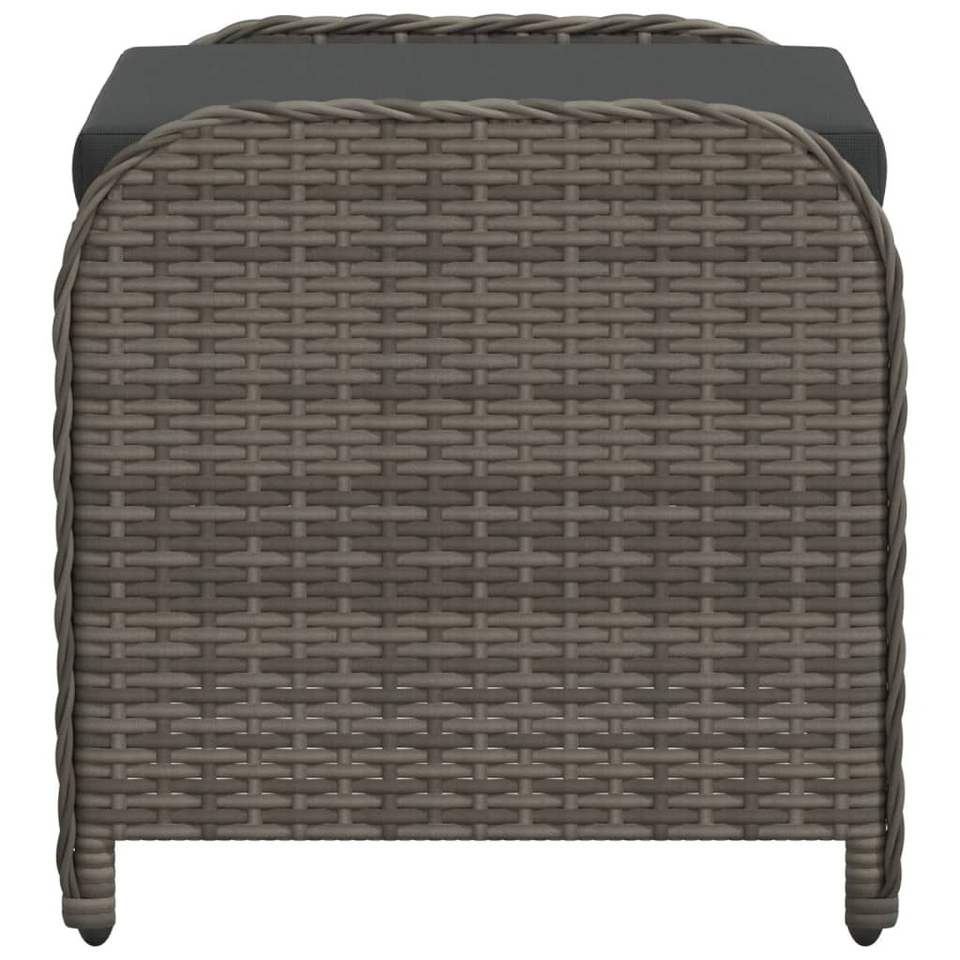 Gray Poly Rattan Patio Stool with Cushion 22.8"x18.1"x18.1" Garden Chairs