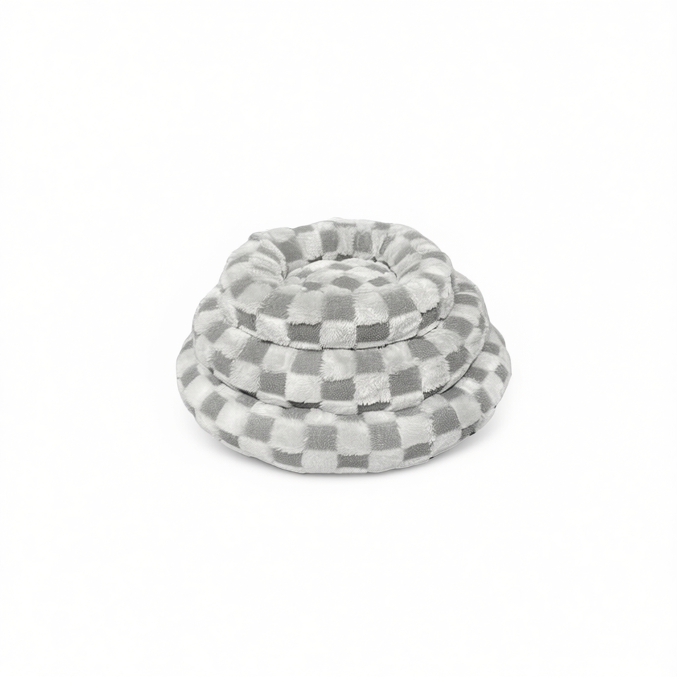 Gray Rabbit Hair Round Nest Beauty Grid Pet Bed