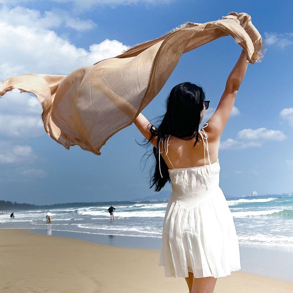 Gray Series High-End Women's Shawl Solid Color Japanese Style Beach Scarf Long Strip Polyester Vintage Fringed Gauze