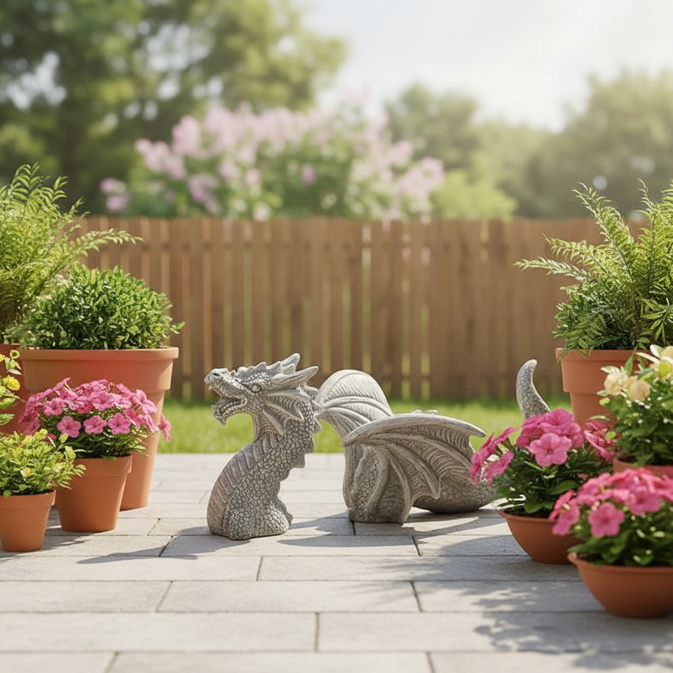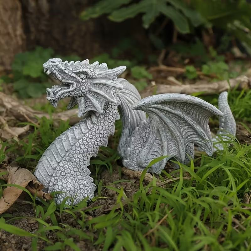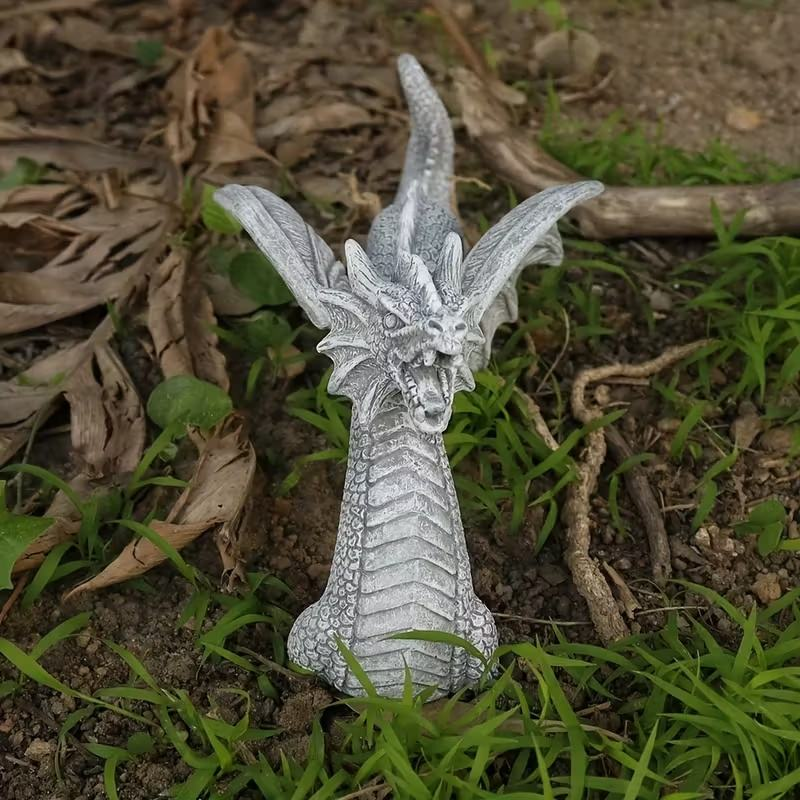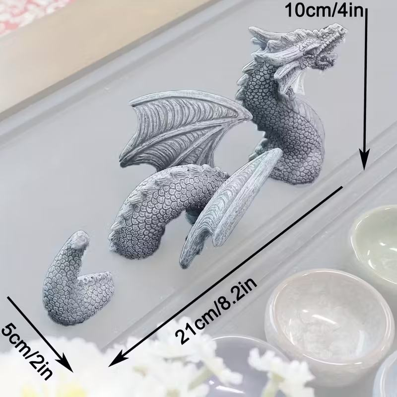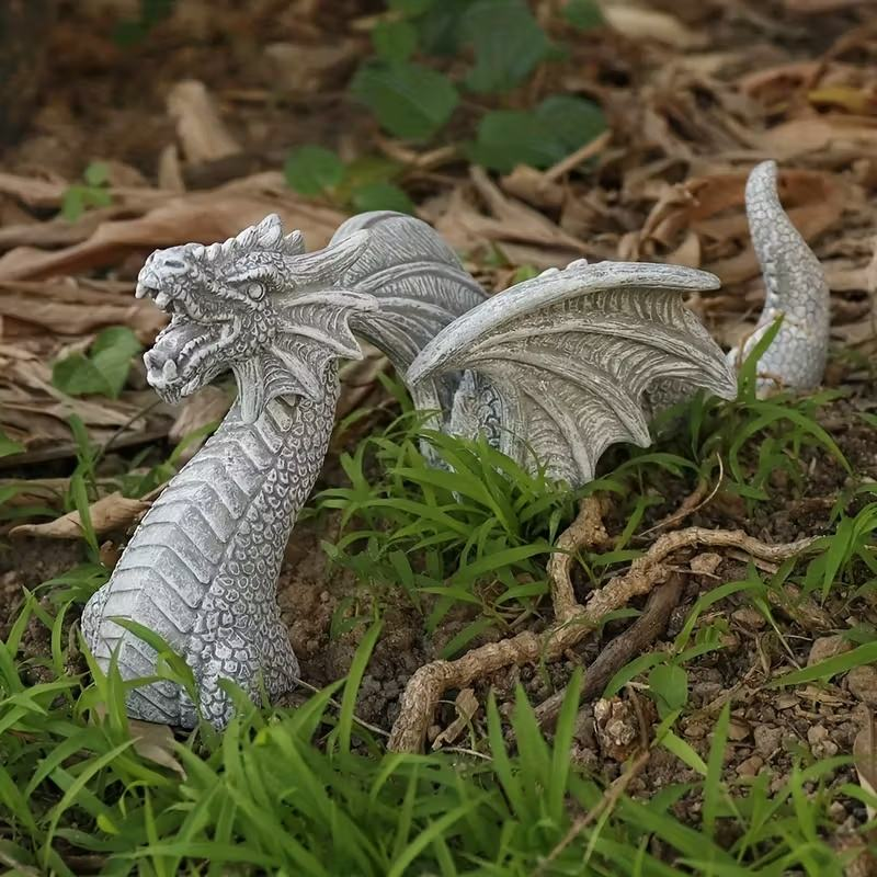 Gray Stone Texture Small Dragon Figurine Resin Hand-Painted Fashion Decorative Piece for Courtyard/Micro Landscape Fantasy Style
