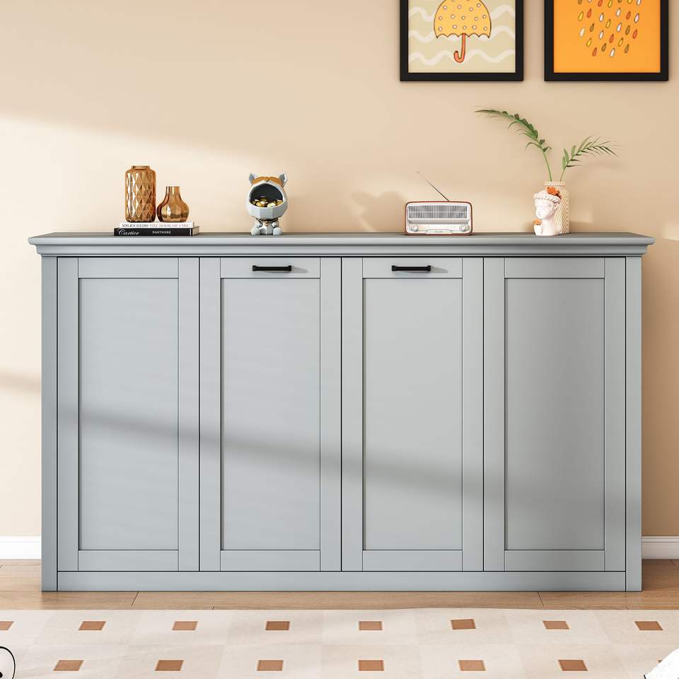 Letto a scomparsa matrimoniale grigio, pieghevole nel mobile