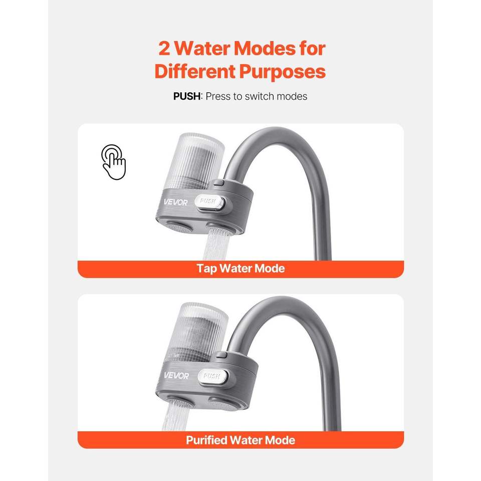 Gray Vertical Faucet Mount Water Filter Kitchen Sink Water Purifier