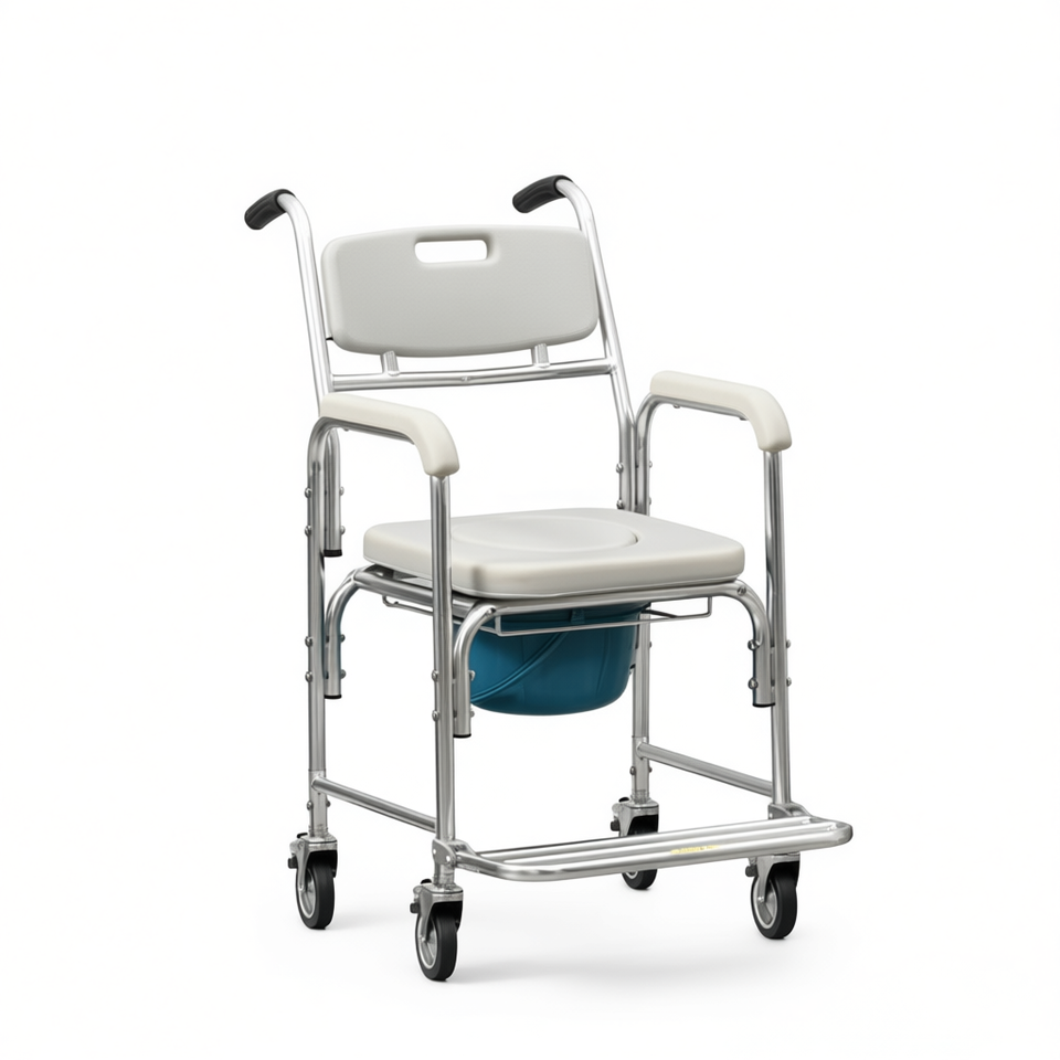 Rolling Toilet Chair With Padded Seat Waterproof Commode For Bathroom Safety Equipment