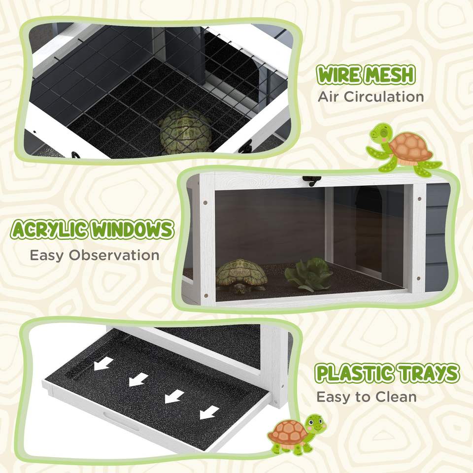 Gray Wooden Tortoise Habitat with Lamp Holder Pet House Furniture