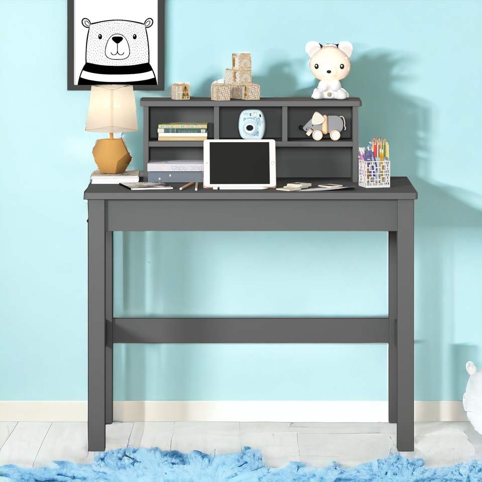 Scrivania grigia con Hutch Computer scrivania Set di mobili
